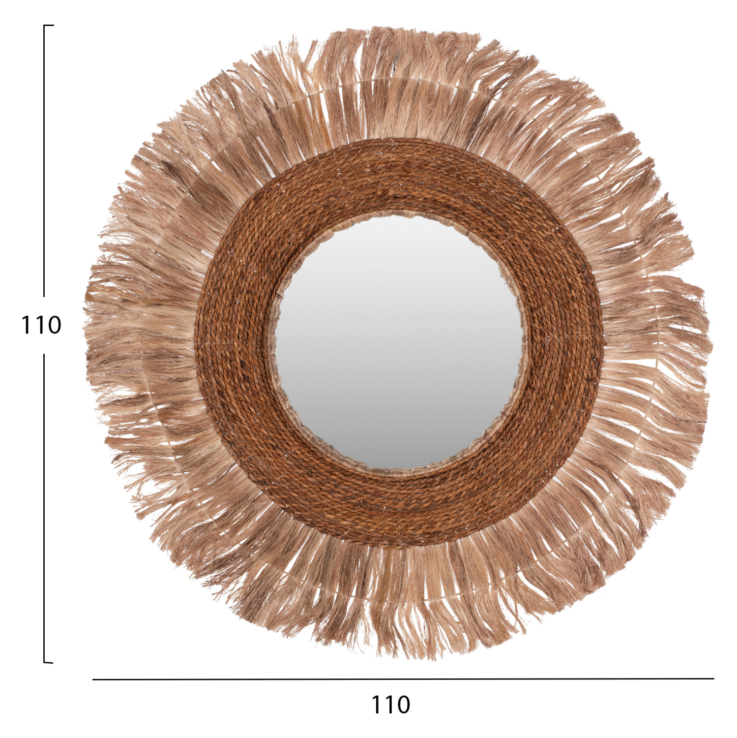 O καθρέπτης FB97740 είναι πραγματικά ένα εντυπωσιακό κομμάτι στην διακόσμηση του χώρου σας! Το design του είναι μοναδικό με το αριστοτεχνικά κατασκευασμένο πλαίσιο από ίνες και σχοινί κάνναβης Μανίλας, το οποίο στο κέντρο του «φιλοξενεί» τον καθρέπτη. Οι ίνες είναι στο φυσικό τους χρώμα και οι διαστάσεις όλης της κατασκευής είναι μεγάλες.