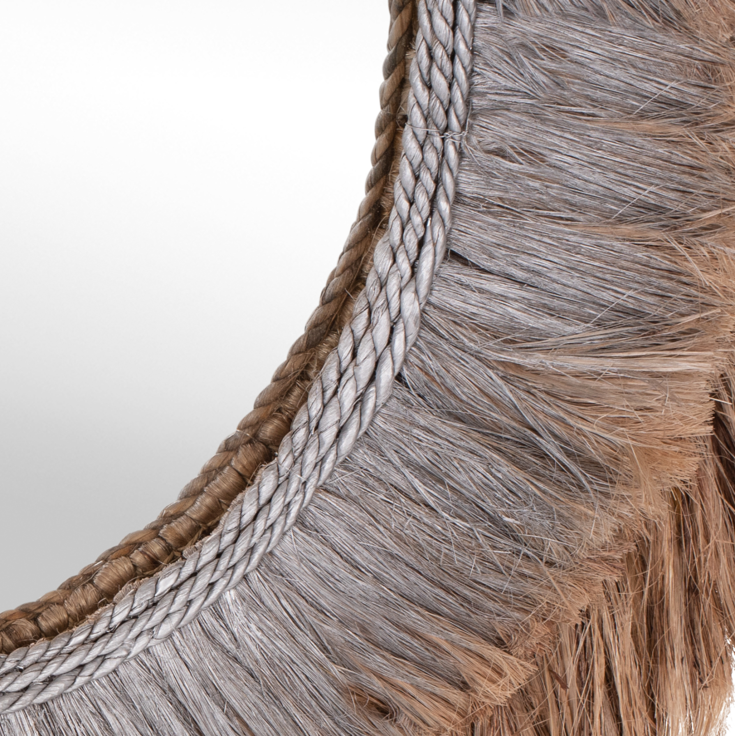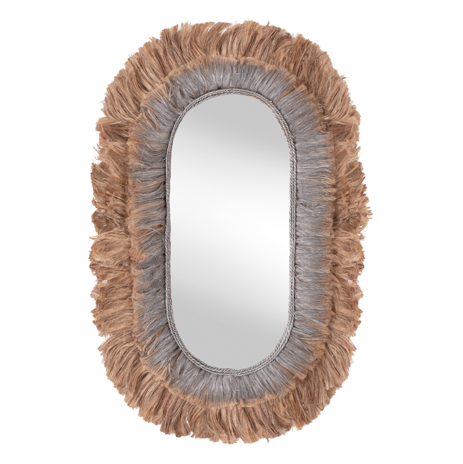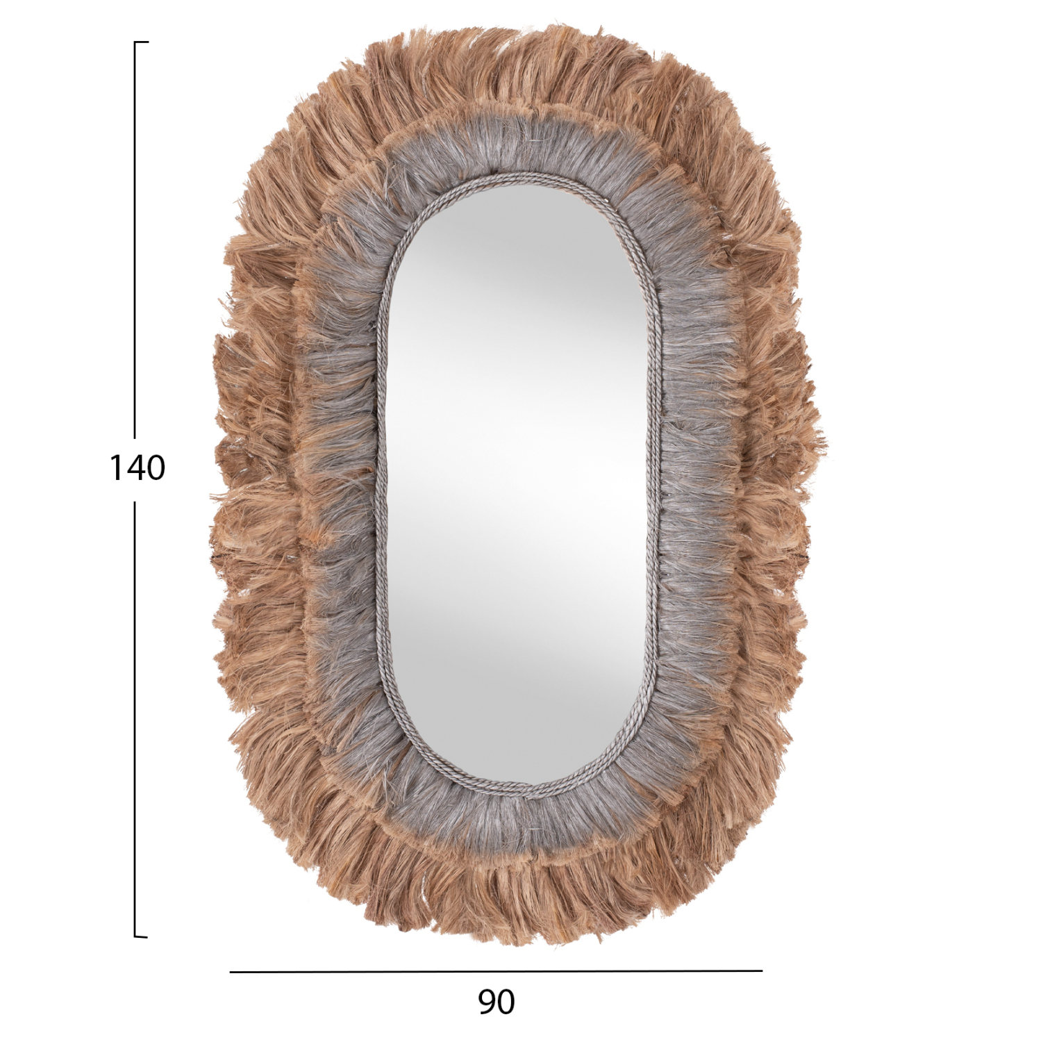 O καθρέπτης FB97738 σε οβάλ σχήμα είναι πραγματικά ένα εντυπωσιακό κομμάτι στην διακόσμηση του χώρου σας! Το design του είναι όμορφο με πλαίσιο από 2 στρώσεις με ίνες κάνναβης Μανίλας σε φυσικό και ασημί χρώμα, το οποίο στο κέντρο του «φιλοξενεί» τον μεγάλο καθρέπτη. Ένας καθρέπτης τοίχου κυρίως διακοσμητικός που προσφέρει ένα εστιακό σημείο στον χώρο σας σε πολύ ιδιαίτερο στυλ.