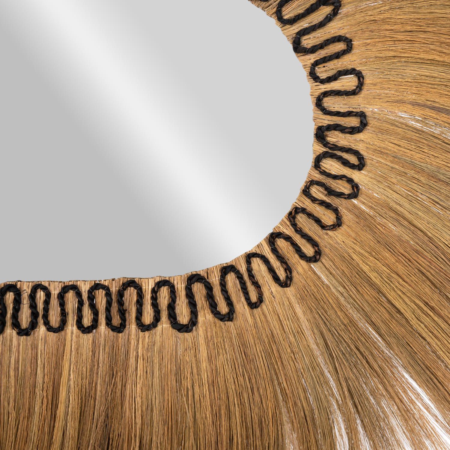 O οβάλ καθρέπτης FB97803 είναι πραγματικά ένα εντυπωσιακό κομμάτι στην διακόσμηση του χώρου σας! Το design του είναι επιβλητικό με πλαίσιο από ίνες του φυτού Rayung και ζιγκ-ζαγκ δέσιμο κοντά στον καθρέπτη με μαύρο σχοινί από ίνες φλοιού μπανάνας. Οι ίνες είναι στο φυσικό τους χρώμα το οποίο έχει ήδη αρχίσει να γίνεται καφεκίτρινο.