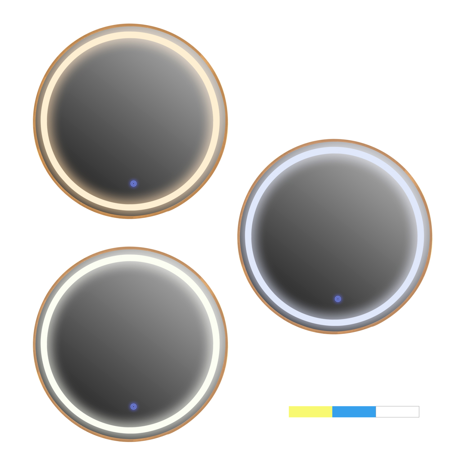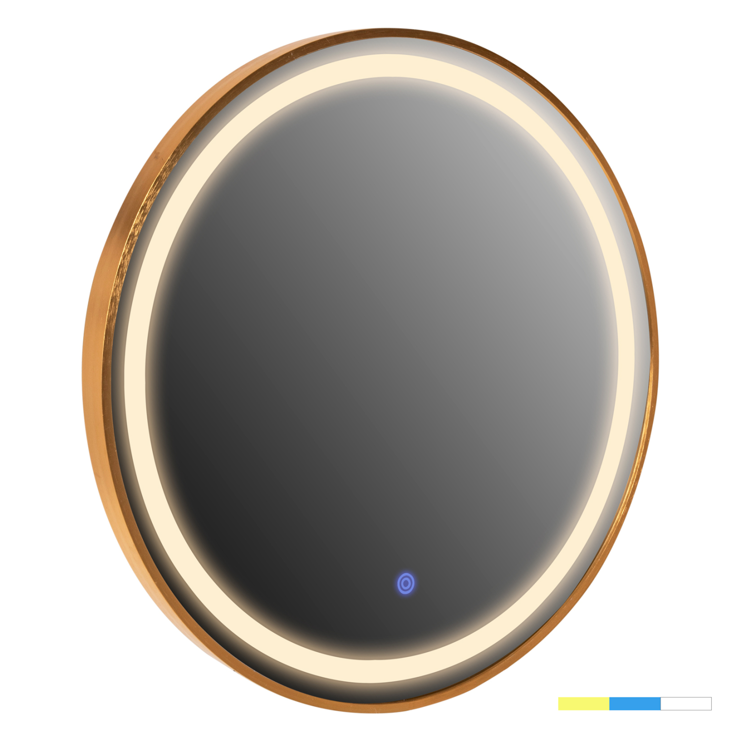 Ο FB99580.30 είναι ένας στρογγυλός καθρέφτης τοίχου με ΧΡΥΣΟ σκελετό, κομψός και σε άκρως ικανοποιητική διάσταση. Ωστόσο, αυτό που τον διαφοροποιεί σε σχέση με τους απλούς καθρέπτες είναι ότι διαθέτει φωτισμό LED ενσωματωμένο σε κυκλική διάταξη ακολουθώντας την «γραμμή» του πλαισίου. Ο φωτισμός ενεργοποιείται με ένα διακόπτη αφής (σε μπλέ χρώμα) στο εμπρός και κάτω μέρος του καθρέπτη, ενώ παράγει 3 διαφορετικά χρώματα φωτός. Ζεστό (κιτρινωπό), ελαφρύ μπλέ, και φυσικό λευκό, που ενεργοποιούνται πατώντας τον ίδιο διακόπτη αφής. Ένα χρήσιμο «εργαλείο» κυρίως για το μπάνιο αλλά και για οποιοδήποτε άλλο δωμάτιο χρειάζεστε έναν καθρέπτη με φωτισμό!