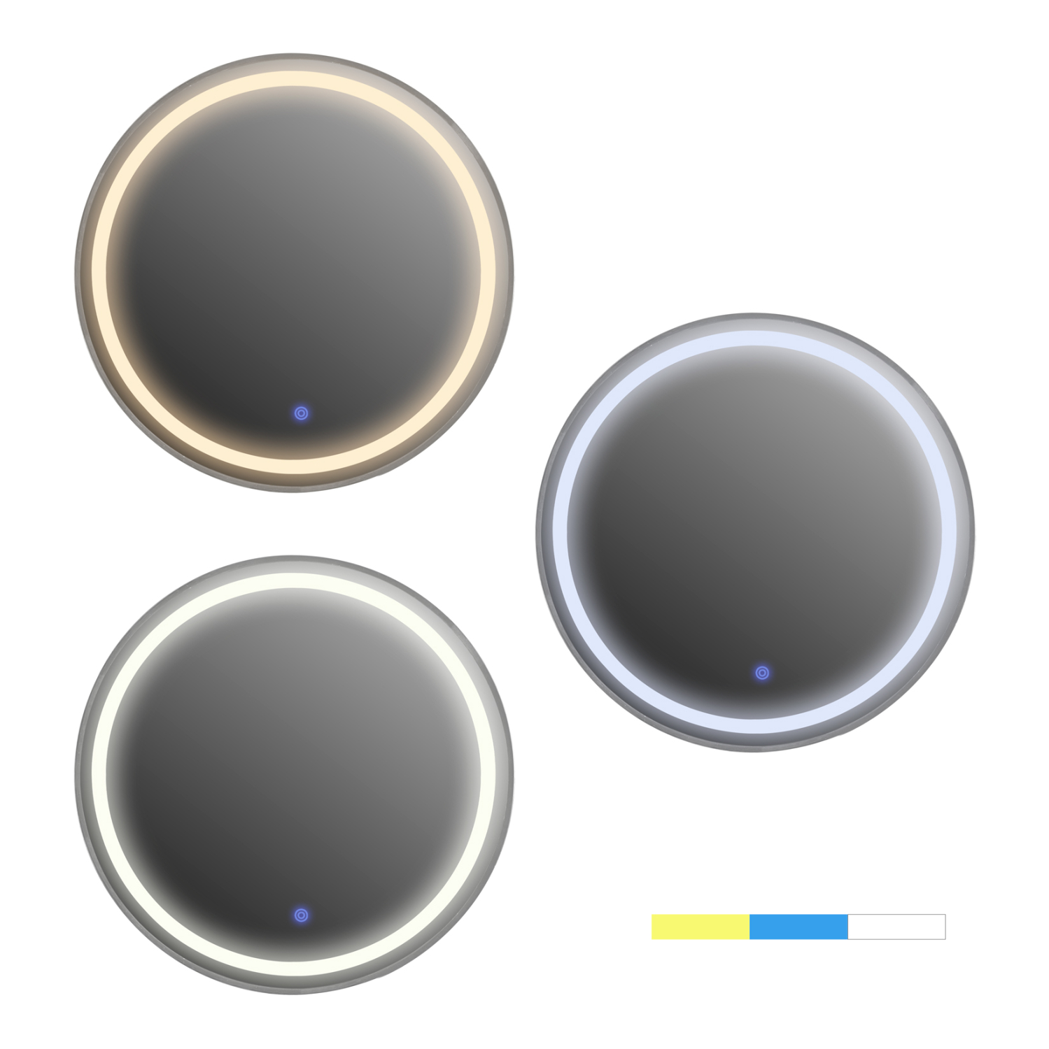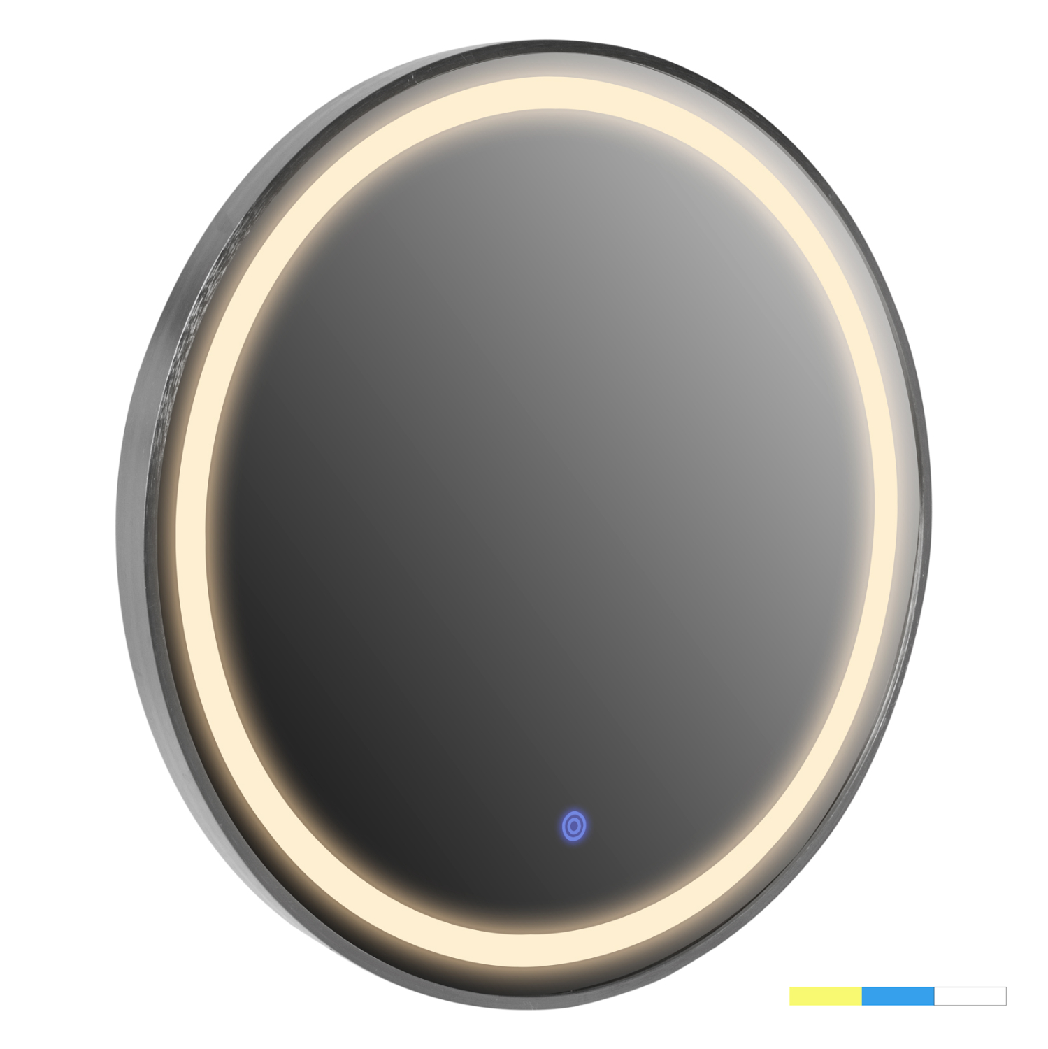 Ο FB99580.40 είναι ένας στρογγυλός καθρέφτης τοίχου με ΓΚΡΙ σκελετό, κομψός και σε άκρως ικανοποιητική διάσταση. Ωστόσο, αυτό που τον διαφοροποιεί σε σχέση με τους απλούς καθρέπτες είναι ότι διαθέτει φωτισμό LED ενσωματωμένο σε κυκλική διάταξη ακολουθώντας την «γραμμή» του πλαισίου. Ο φωτισμός ενεργοποιείται με ένα διακόπτη αφής (σε μπλέ χρώμα) στο εμπρός και κάτω μέρος του καθρέπτη, ενώ παράγει 3 διαφορετικά χρώματα φωτός. Ζεστό (κιτρινωπό), ελαφρύ μπλέ, και φυσικό λευκό, που ενεργοποιούνται πατώντας τον ίδιο διακόπτη αφής. Ένα χρήσιμο «εργαλείο» κυρίως για το μπάνιο αλλά και για οποιοδήποτε άλλο δωμάτιο χρειάζεστε έναν καθρέπτη με φωτισμό!