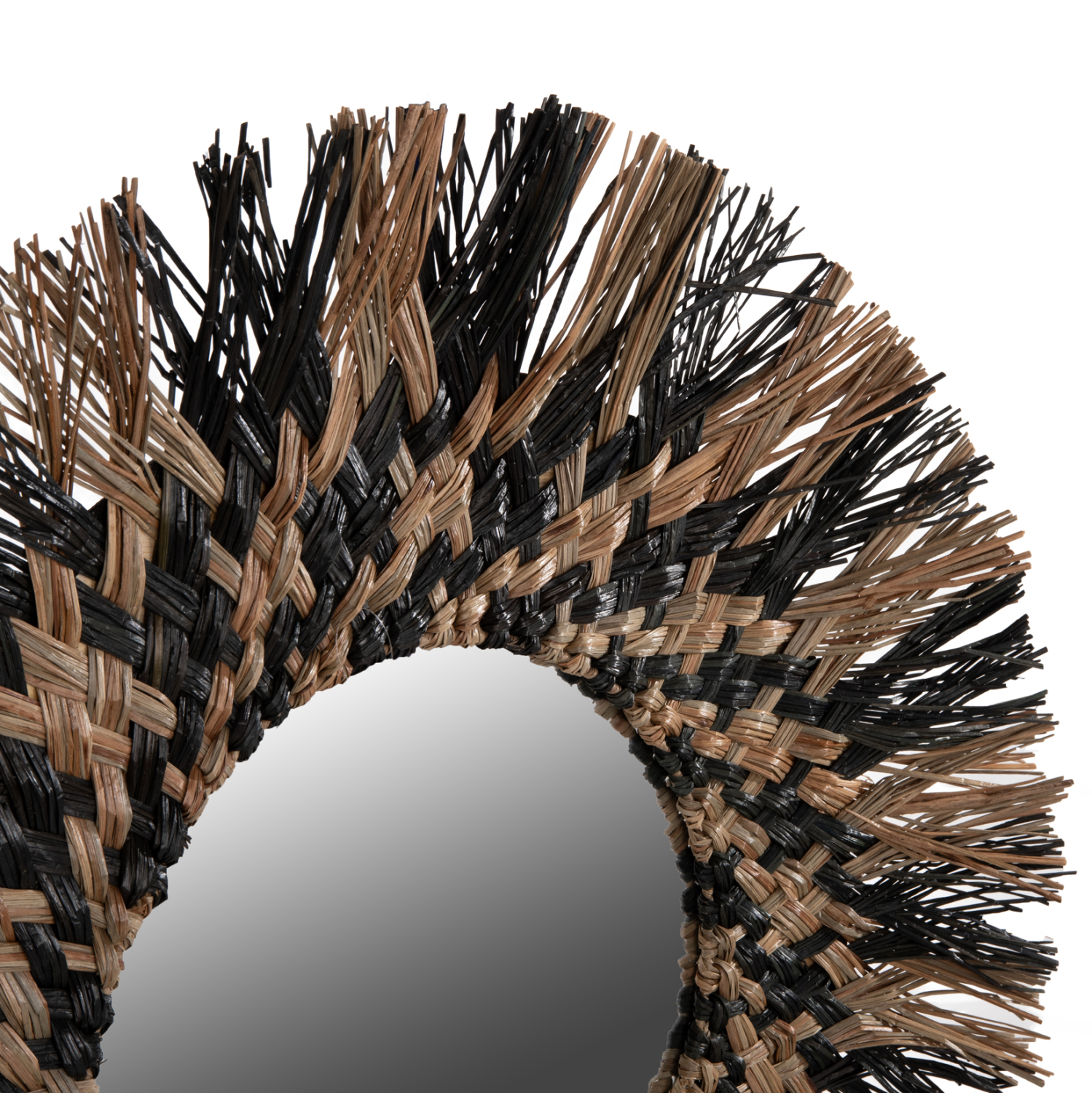 O καθρέπτης FB97833, είναι πραγματικά ένα εντυπωσιακό κομμάτι στην διακόσμηση του χώρου σας! Το design του είναι ξεχωριστό με πλαίσιο από το χόρτο Mendong σε πλέξη, το οποίο στο κέντρο του «φιλοξενεί» τον καθρέπτη, ενώ είναι σε ΜΑΥΡΟ ΚΑΙ ΦΥΣΙΚΟ χρώμα. Το χαρακτηριστικό είναι ότι ο καθρέφτης είναι μικρός και αποτελεί κυρίως διακοσμητικό στοιχείο.