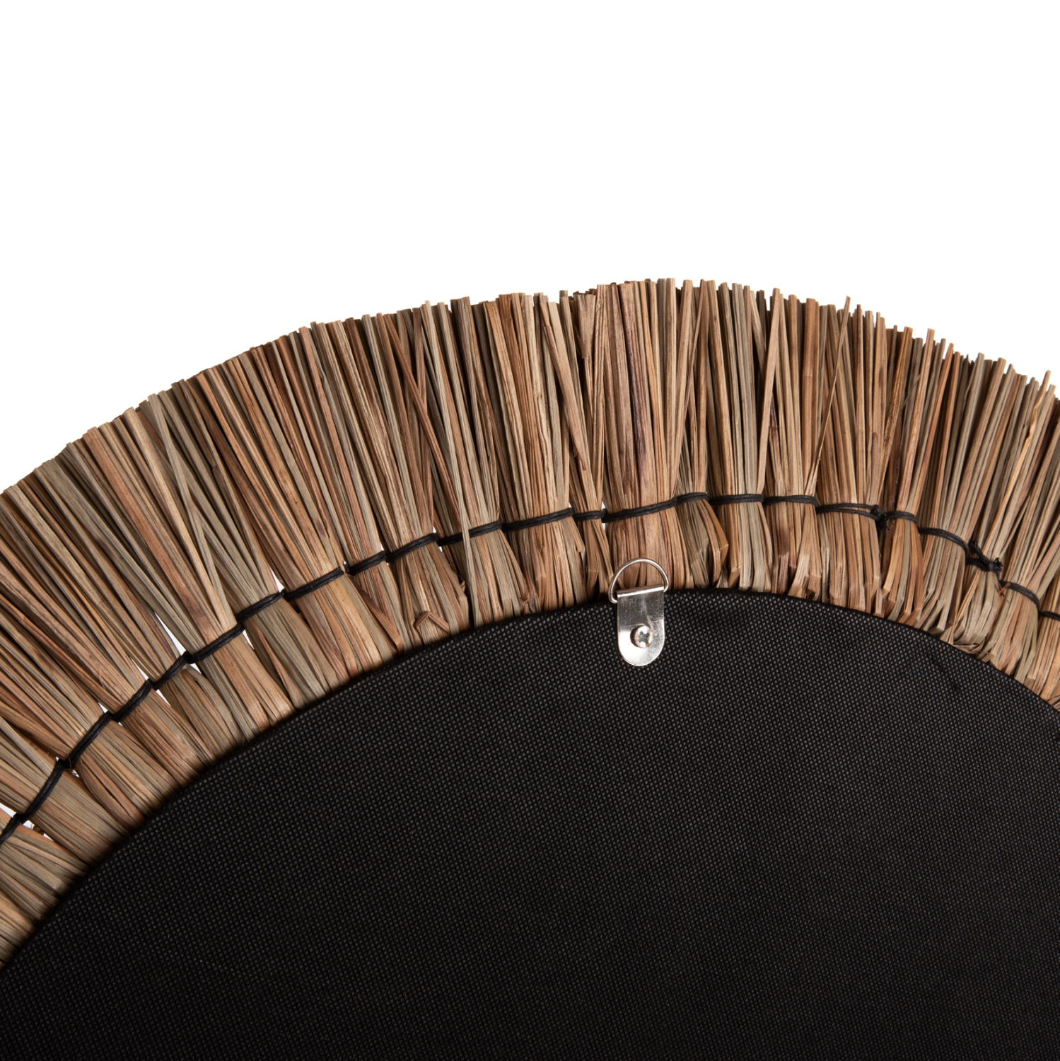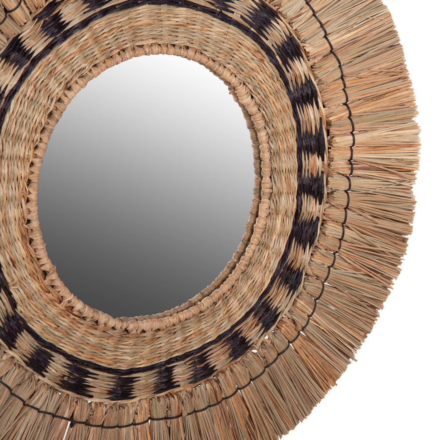 O καθρέπτης FB97834, είναι πραγματικά ένα εντυπωσιακό κομμάτι στην διακόσμηση του χώρου σας! Το design του είναι ξεχωριστό με πλαίσιο από το χόρτο Mendong, το οποίο στο κέντρο του «φιλοξενεί» τον καθρέπτη, ενώ είναι σε ΦΥΣΙΚΟ χρώμα με ΜΑΥΡΕΣ λεπτομέρειες. Το χαρακτηριστικό είναι ότι ο καθρέφτης είναι μικρός και αποτελεί κυρίως διακοσμητικό στοιχείο.