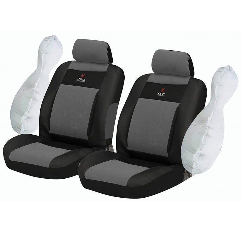 Καλύμματα Μπροστινά ΣΕΤ Universal με Αποσπώμενο Κεφαλάρι (Ύφασμα) XDC 2 τμχ Συμβατό με Αερόσακους – ΜΑΥΡΟ/ΓΚΡΙ 9990000003556