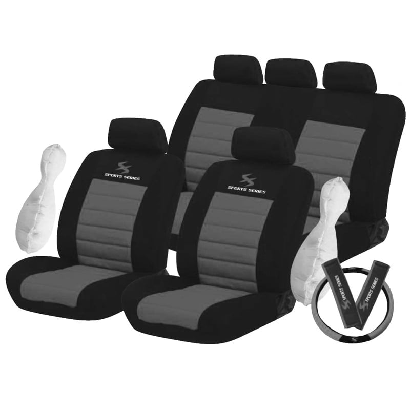 Καλύμματα ΣΕΤ Universal με Αποσπώμενο Κεφαλάρι (Ύφασμα) SPORT SERIES 12 τμχ Διαιρούμενα + Καλύμματα Ζωνών και Τιμονιού – ΜΑΥΡΟ/ΓΚΡΙ 9990000003495