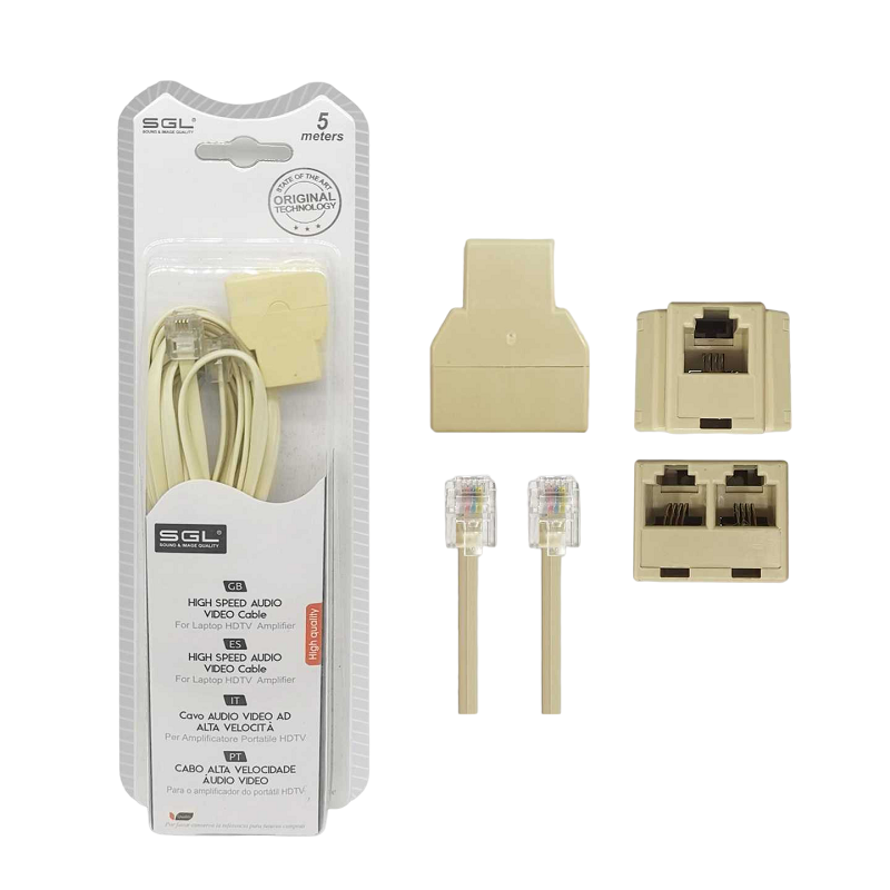 Καλώδιο γραμμής τηλεφώνου με διακλαδωτή – 6P4C1-2 – 5m – 674896 8912345674896