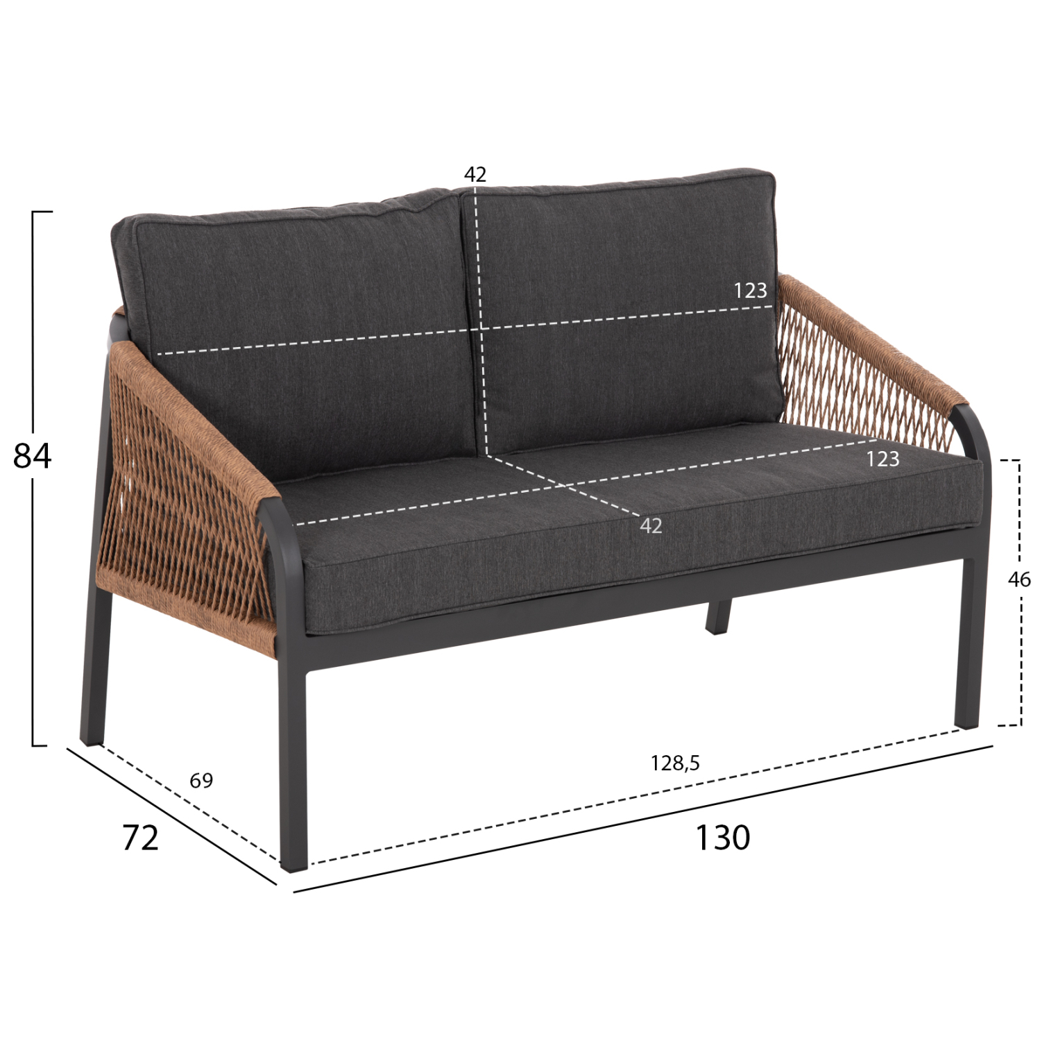 ΚΑΝΑΠΕΣ ΕΞ.ΧΩΡΟΥ 2ΘΕΣΙΟΣ FB96116.03 ΑΛΟΥΜΙΝΙΟ ΑΝΘΡΑΚΙ-ΣΧΟΙΝΙ-ΑΝΘΡΑΚΙ ΜΑΞΙΛΑΡΙΑ 2θέσιος Μπεζ Ανθρακί Καναπέδες Σχοινί