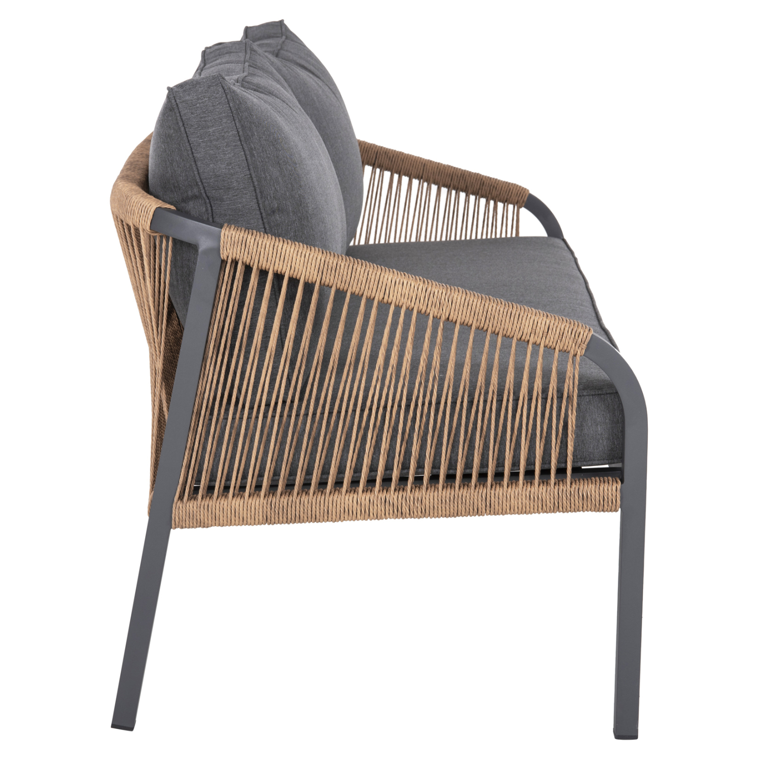 Σας παρουσιάζουμε τον FB96055.03, έναν πανέμορφο 3θέσιο καναπέ εξωτερικού χώρου σε συνδυασμό ΑΝΘΡΑΚΙ-ΜΠΕΖ. Ο συνδυασμός του σκελετού αλουμινίου σε ΑΝΘΡΑΚΙ χρώμα με το ΣΚΟΥΡΟ ΜΠΕΖ συνθετικό σχοινί που διατρέχει πλεγμένο όλο τον καναπέ, καθώς και τα 2 μεγάλα μαξιλάρια πλάτης με πολυεστερικό ύφασμα σε ΑΝΘΡΑΚΙ χρώμα είναι μοναδικός, και μπορεί να αλλάξει άμεσα την εικόνα οποιουδήποτε εξωτερικού χώρου. Χαρακτηριστικό γνώρισμα αυτού του καναπέ είναι ότι τα πόδια είναι ψηλά, με αποτέλεσμα και το ύψος του καθίσματος να είναι ψηλό.