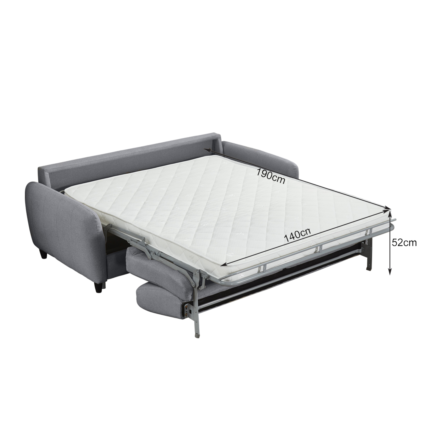Ο μηχανισμός διαθέτει αναδιπλούμενο μεταλλικό σκελετό και ενσωματωμένο στρώμα, το οποίο ανοίγει με ομαλή κίνηση τραβώντας τον ειδικό ιμάντα που βρίσκεται πίσω από τα μαξιλάρια πλάτης. Τα μαξιλάρια και το κάθισμα σηκώνονται μαζί, καθώς είναι στερεωμένα πάνω στο μεταλλικό πλαίσιο του μηχανισμού.