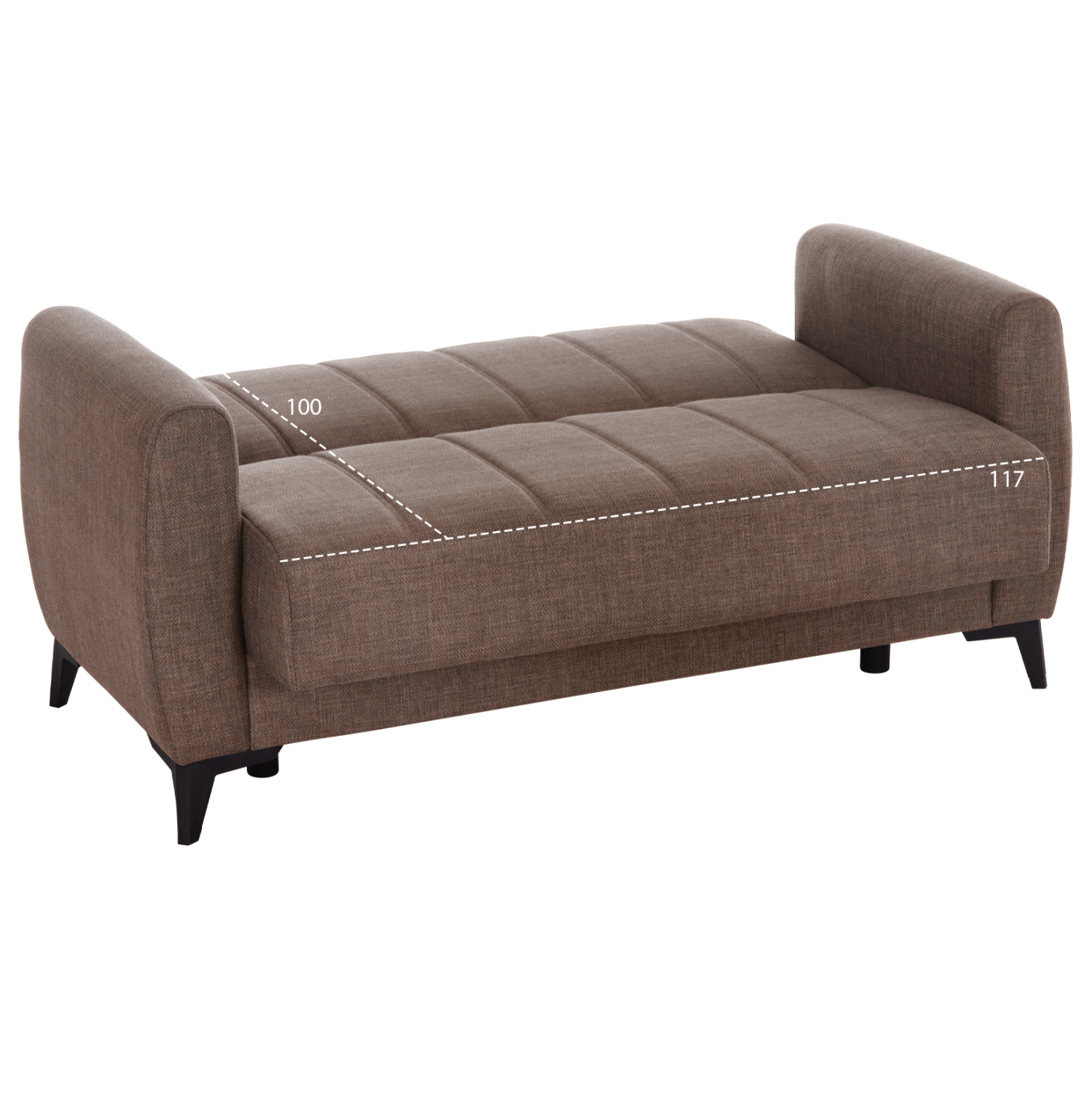 Η μετατροπή του σε κρεβάτι γίνεται με έναν εύχρηστο μηχανισμό «κλικ-κλακ» που «ρίχνει» την πλάτη. Και για να μην υπάρξει ποτέ κανένα πρόβλημα με τον καναπέ, υπάρχουν επιπλέον πόδια που χρησιμεύουν όταν ο καναπές γίνεται κρεβάτι! Συνέπεια αυτού, βέβαια, είναι και η ύπαρξη αποθηκευτικού χώρου κάτω από το κάθισμα του καναπέ, ο οποίος πάντα είναι χρήσιμος, ειδικά σε φοιτητικά σπίτια. Τέλος, τα πόδια του καναπέ σε μαύρο χρώμα, είναι ψηλά επιτρέποντας το εύκολο καθάρισμα χωρίς να χρειαστεί να μετακινηθεί ολόκληρος ο καναπές.