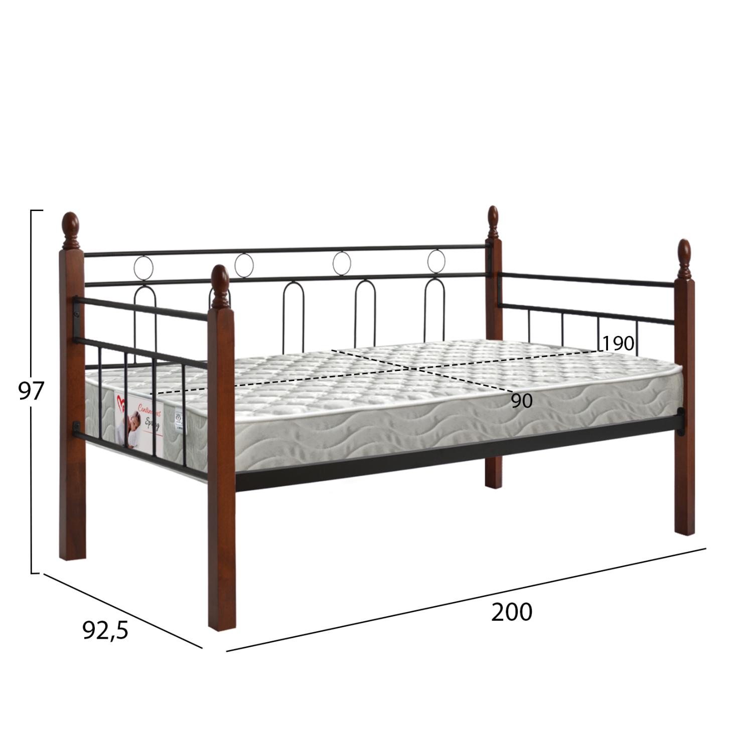 •Το στρώμα που συνοδεύει το κρεβάτι έχει διάσταση 90×190εκ, και είναι τεχνολογίας συνεχόμενων ελατηρίων (continuous spring) και μονής όψης, που σημαίνει ότι δεν πρέπει να το αναποδογυρίζετε.
