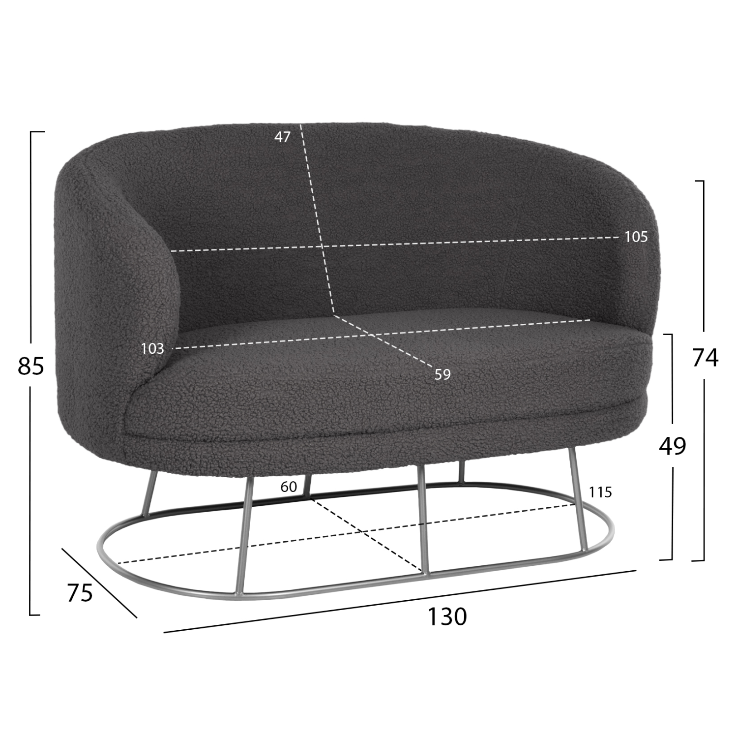 Ο 2-θέσιος καναπές FB98492.21 είναι μια μοντέρνα και στιλάτη πρόταση που θα αφήσει το στίγμα της σε όποιο σαλόνι κι αν τοποθετηθεί. Το σχεδόν οβάλ του σχήμα με την ανάλογη μεταλλική της βάση, σε συνδυασμό με την χαμηλή πλάτη και τα ψηλά μπράτσα, χωράνε 2 άτομα και προσφέρουν άνεση και στυλ. Το όμορφο ΓΚΡΙ χρώμα με το ΑΣΗΜΙ της βάσης μπορεί να συνδυαστεί με πληθώρα άλλων χρωμάτων στην διακόσμηση του σαλονιού.