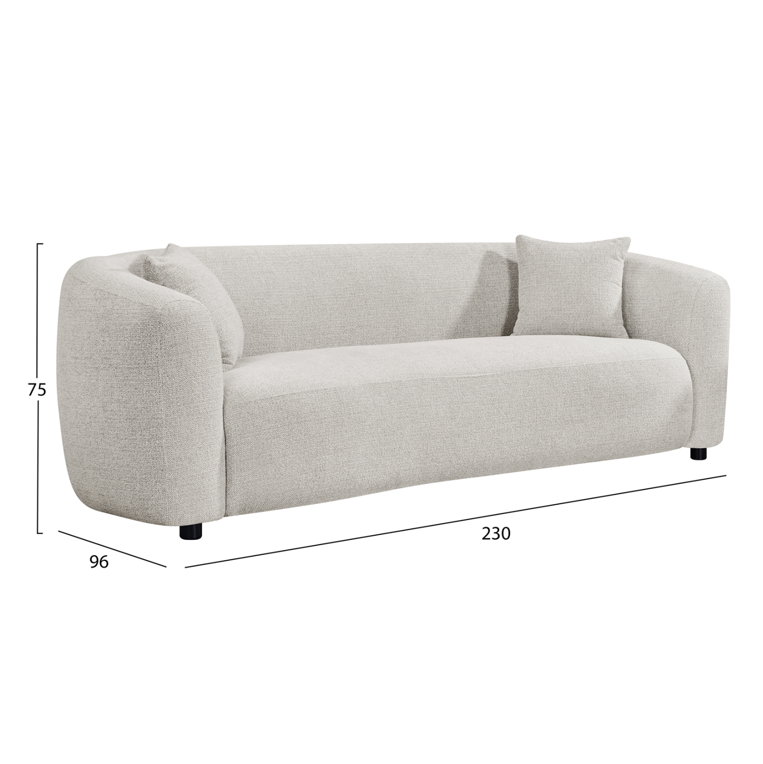 Ο καναπές FB93321.02 αποτελεί μια κομψή και διαχρονική επιλογή για σύγχρονους χώρους καθιστικού. Ο λιτός σχεδιασμός του με καθαρές ενιαίες γραμμές και πολύ χαμηλά πόδια, δημιουργεί μια αίσθηση άνεσης και ισορροπίας στον χώρο. Η επένδυση με ποιοτικό ανάγλυφο ύφασμα σε ευχάριστη ΑΝΟΙΧΤΗ ΜΠΕΖ απόχρωση προσφέρει μοντέρνα αισθητική και ταιριάζει εύκολα με διαφορετικά στυλ διακόσμησης. Οι πλούσιες διαστάσεις του εξασφαλίζουν άνετο κάθισμα για τρία άτομα, ενώ τα δύο διακοσμητικά μαξιλάρια συμπληρώνουν ιδανικά την εμφάνιση και την άνεση.