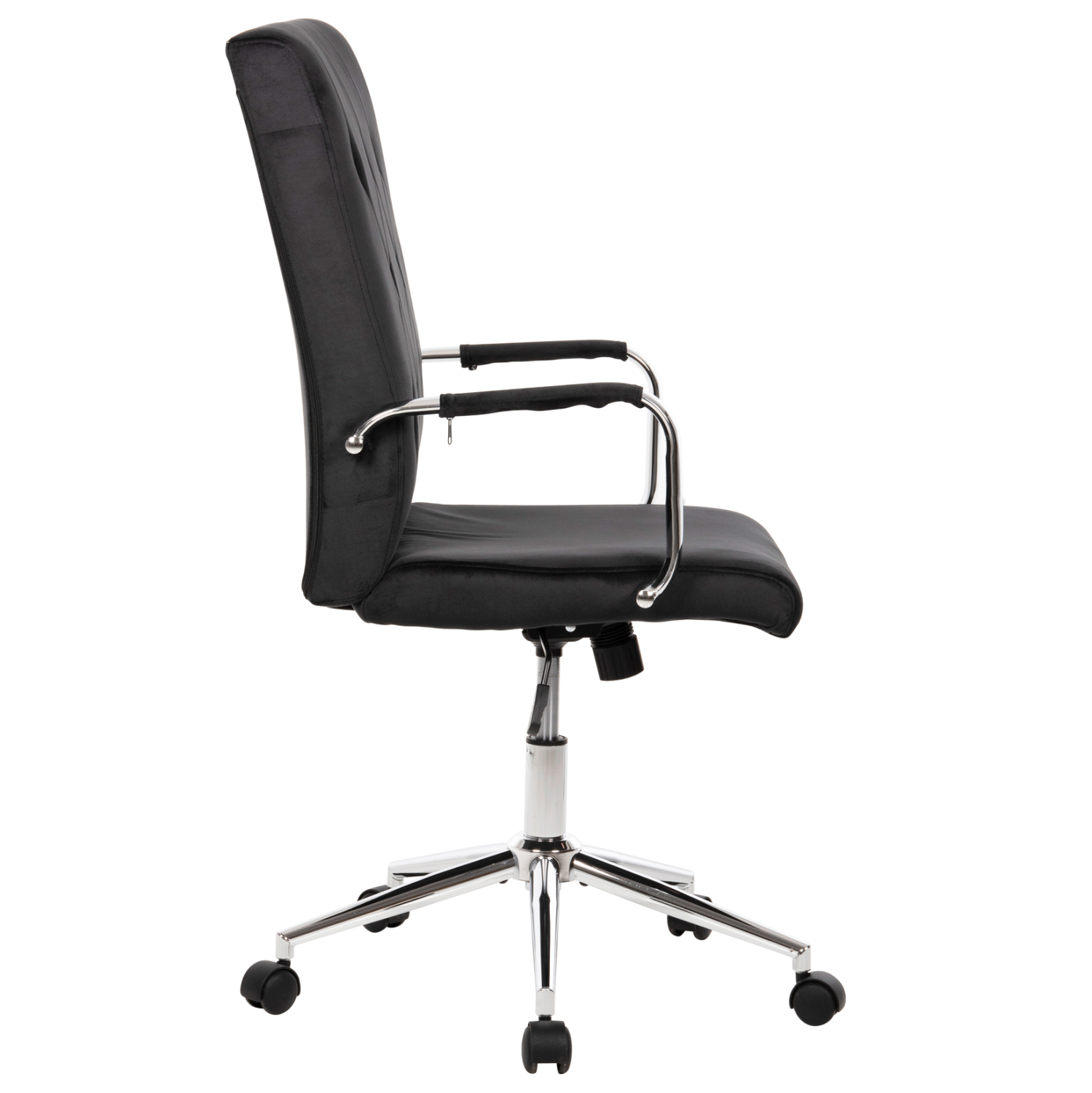 Διευθυντική καρέκλα γραφείου FB91181.04 σε ΜΑΥΡΟ χρώμα. Μια όμορφη καρέκλα γραφείου με ψηλά επίπεδα inox μπράτσα με στρογγυλεμένες γωνίες, επενδυμένα με βελούδινο ύφασμα. Η πλάτη είναι άνετη και ψηλή με «μαξιλάρι» από αφρώδη υλικά για άνεση κατά την χρήση και υποστηρίζει ολόκληρο τον κορμό σας, ενώ είναι επενδυμένη με βελούδινο ύφασμα, όπως επίσης και το φαρδύ και αναπαυτικό κάθισμα με την αναπαυτική επιφάνεια. Η inox γυαλιστερή βάση και η ανάρτηση με την ρύθμιση ύψους προσθέτουν μια αίσθηση πολυτέλειας που είναι πάντα ευπρόσδεκτη για κάθε χώρο, ενώ ο μηχανισμός της καρέκλας με τον καλαίσθητο μεταλλικό μοχλό, προσφέρει ρύθμιση ανάκλισης, για άνετη και ευχάριστη πολύωρη χρήση! Ιδανική για επαγγελματικούς χώρους κυρίως, αλλά ακόμα και για το γραφείο σας στο σπίτι εάν περνάτε αρκετές ώρες στον υπολογιστή και θέλετε μια όμορφη και πλούσια καρέκλα γραφείου.