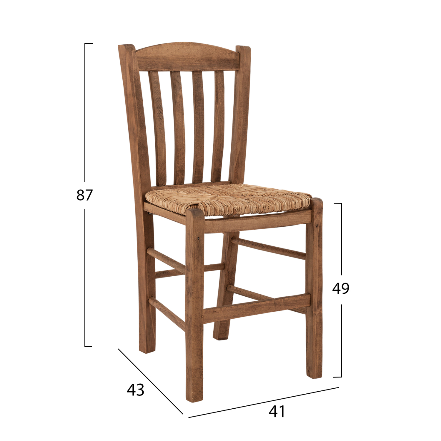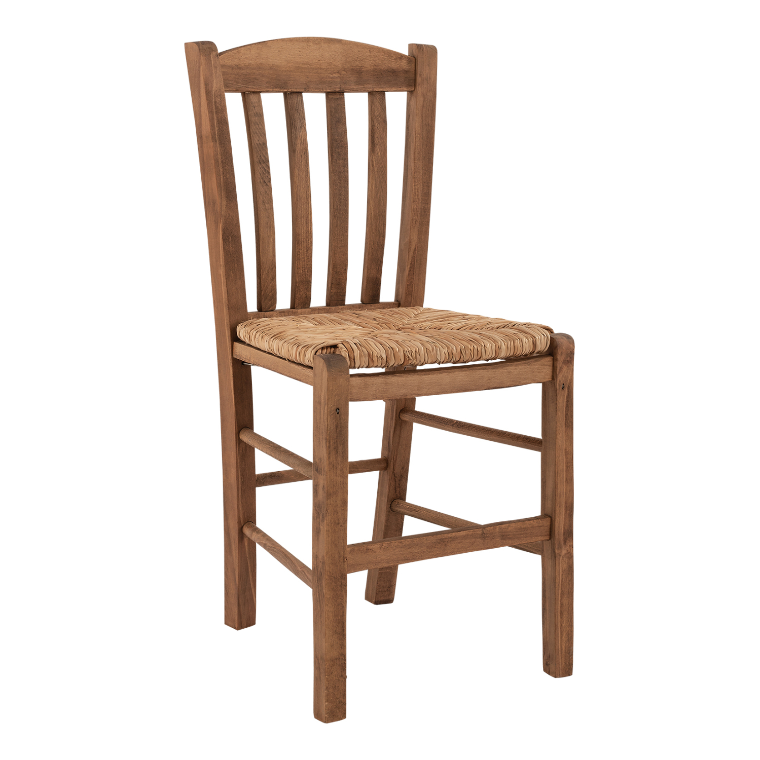 Καρέκλα καφενείου από μασίφ ξύλο φουρνιστής οξιάς εμποτισμού καρυδί και ψάθα.