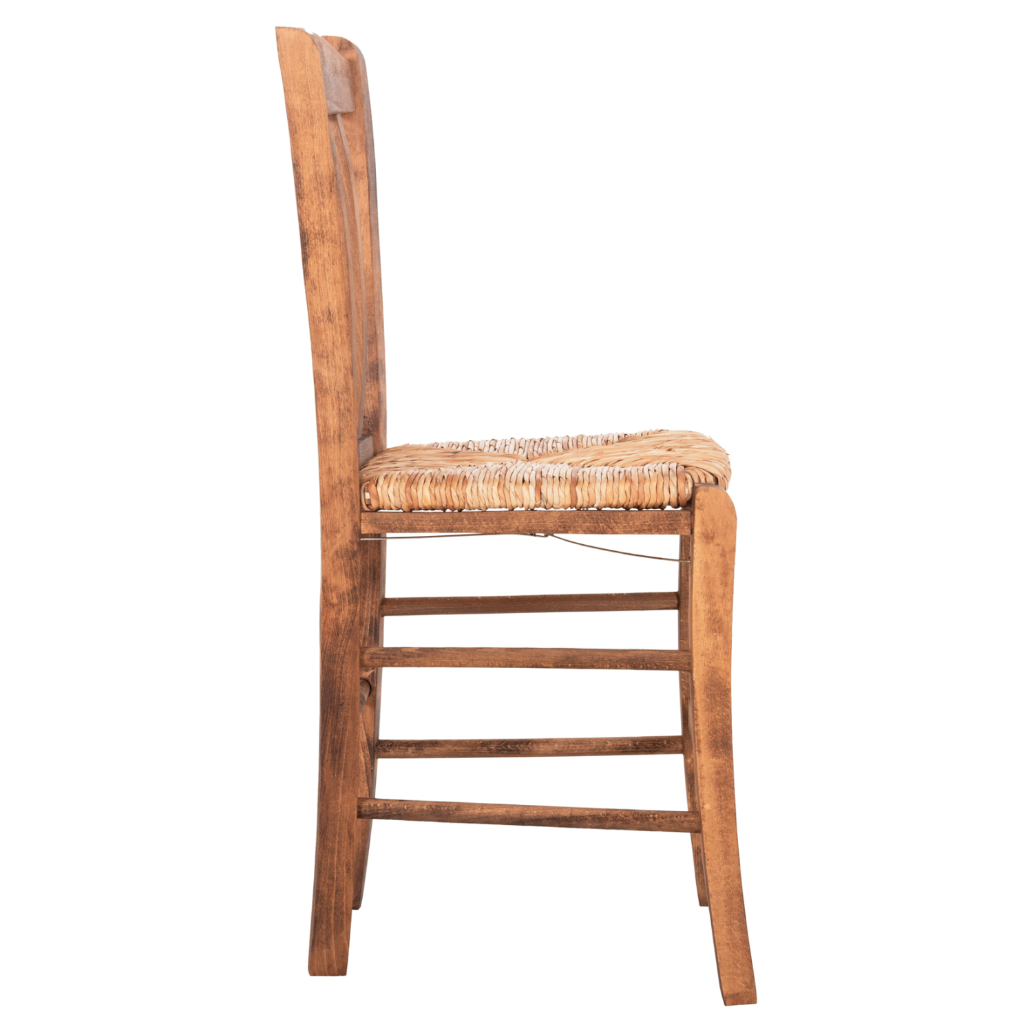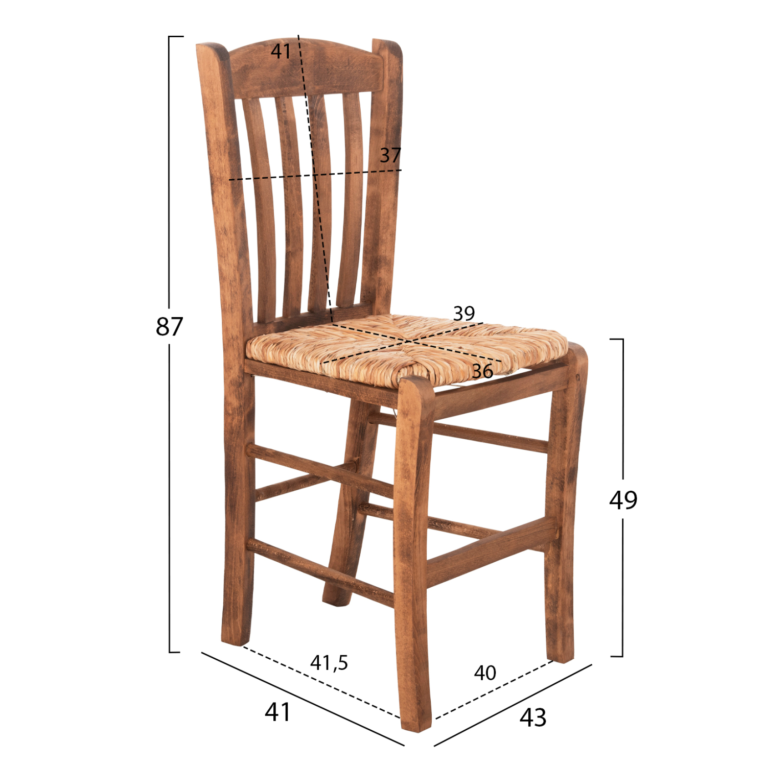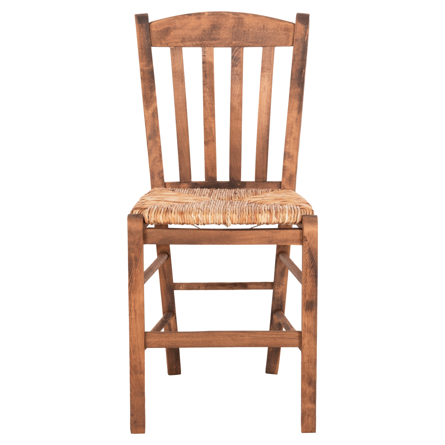 Η καρέκλα καφενείου FB910383.01, για επαγγελματική χρήση, είναι η παραδοσιακή καρέκλα από ξύλο εμποτισμένης οξιάς σε ΚΑΡΥΔΙ χρώμα. Η πλάτη έχει σχέδιο με κάθετα πηχάκια και αισθητικά είναι κατάλληλη για ταβέρνα, καφενείο, αλλά και γενικότερα για χώρους διακοσμημένους με το κλασικό Ελληνικό παραδοσιακό ύφος. Ο σκελετός είναι δεμένος με σύρμα για μεγαλύτερη αντοχή και ανθεκτικότητα στο πέρασμα του χρόνου, ενώ το κάθισμα είναι ψάθινο από ίνες seagrass.