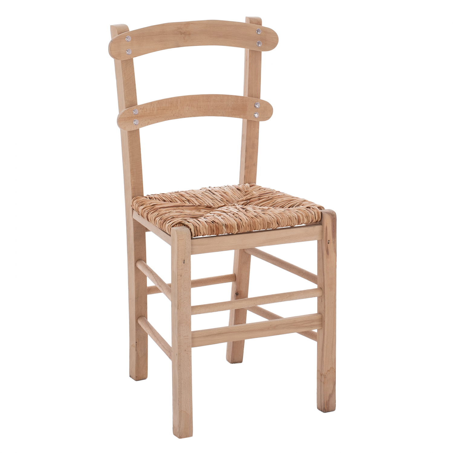 Καρέκλα καφενείου καρφωτή από μασίφ ξύλο φουρνιστής οξιάς άβαφο και ψάθα.