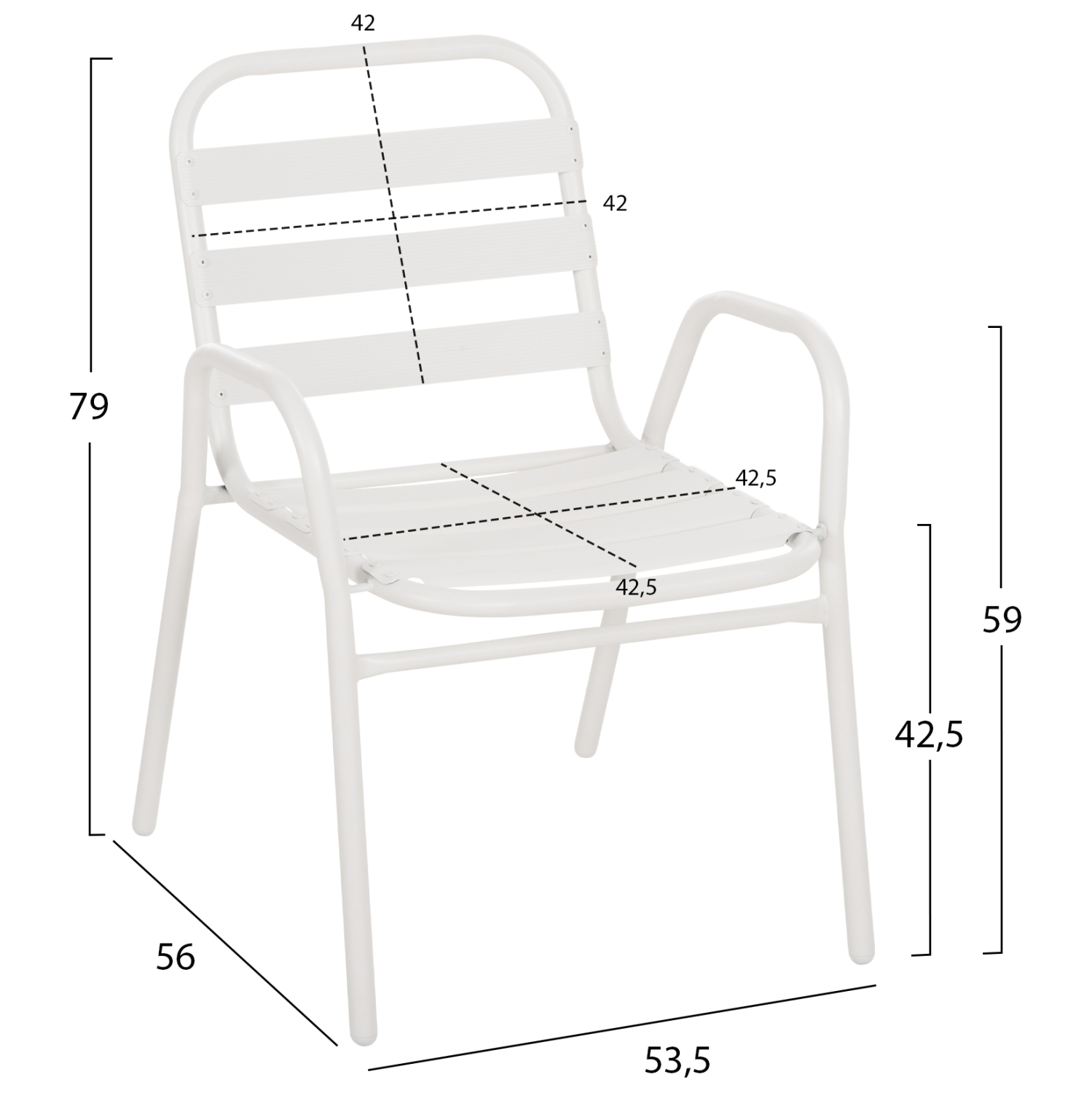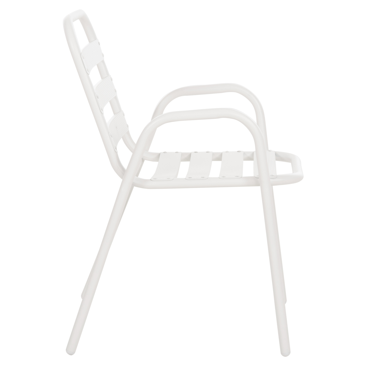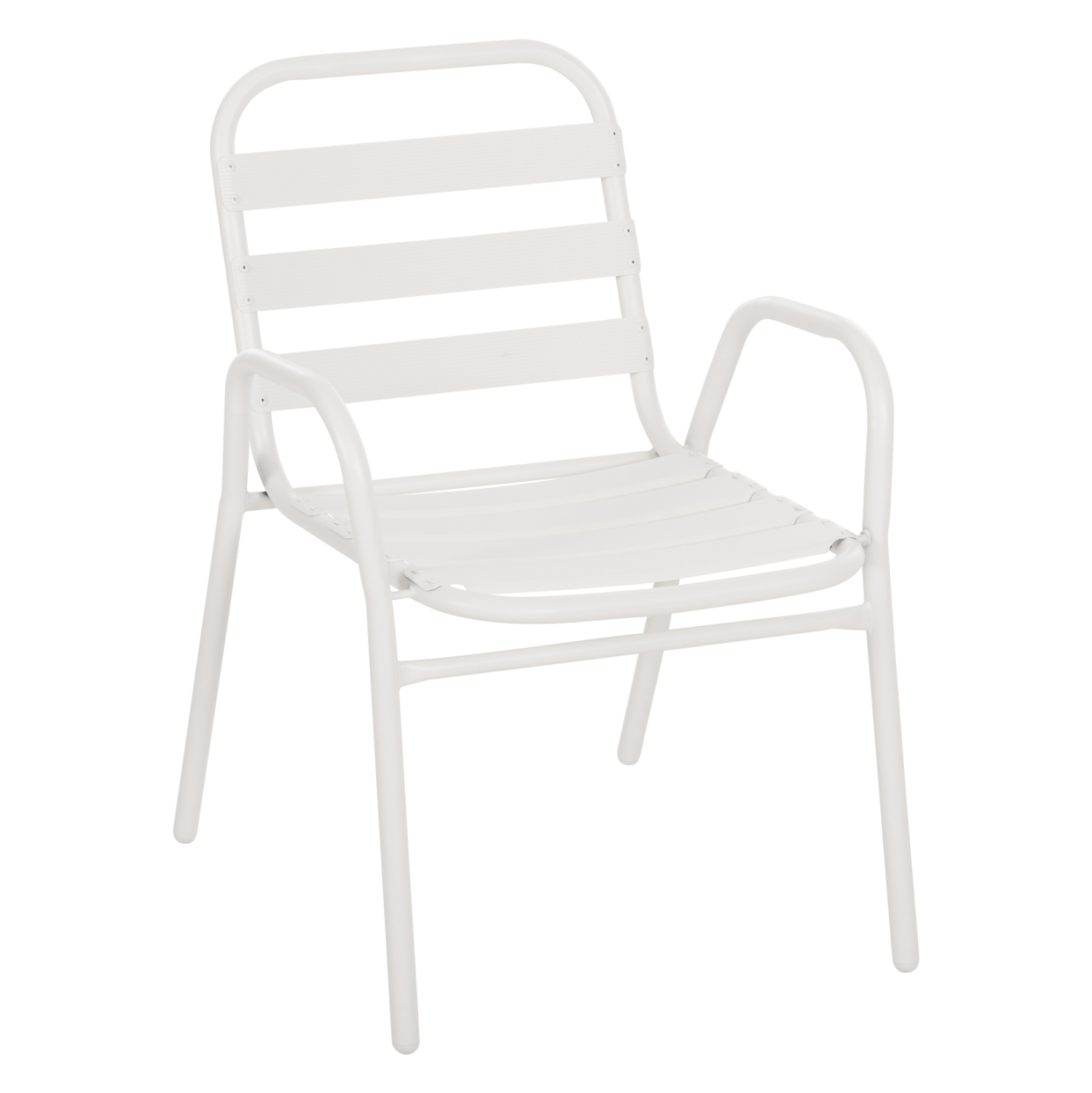 Η καρέκλα εξωτερικού χώρου FB95970.02 είναι κατασκευασμένη από μέταλλο και αλουμίνιο σε ΛΕΥΚΟ χρώμα. Ο σκελετός της είναι μεταλλικός, ενώ η πλάτη και το κάθισμα αποτελούνται από «φέτες» αλουμινίου. Σχεδιαστικά, είναι λιτή με όμορφες καμπύλες και χαμηλά μπράτσα, ενώ το γεγονός ότι είναι ελαφριά και ΣΤΟΙΒΑΖΟΜΕΝΗ την κάνει ιδιαιτέρως πρακτική αφού μπορείτε να την αποθηκεύσετε εύκολα στον μικρότερο δυνατό χώρο.