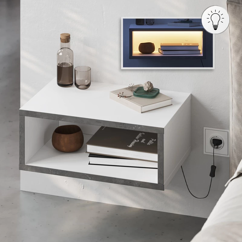 Κομοδίνο επιτοίχιο Brik Megapap με LED χρώμα λευκό – γκρι ρετρό 45x30x18εκ.