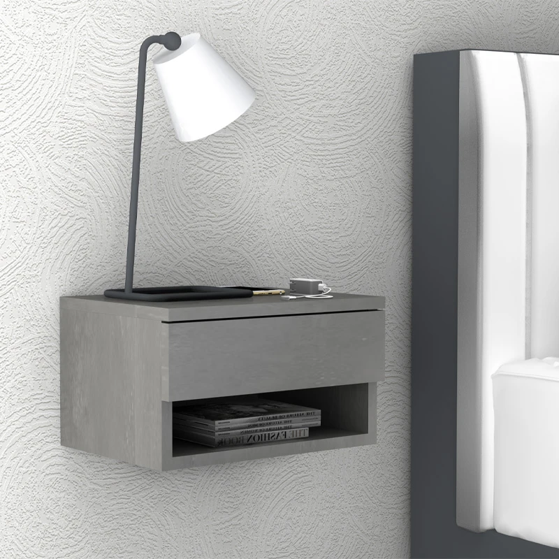 Κομοδίνο επιτοίχιο Mary Megapap χρώμα γκρι σκυροδέματος 40x30x23εκ.