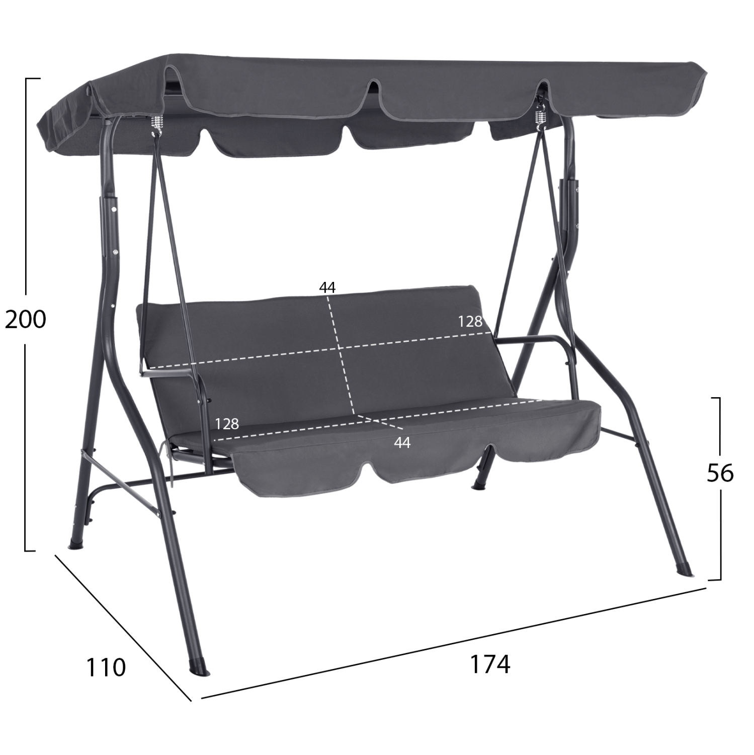 ΚΟΥΝΙΑ 3ΘΕΣΙΑ ΜΕ ΣΚΙΑΣΤΡΟ FB95979.01 ΜΕΤΑΛΛΙΚΗ ΓΚΡΙ ΧΡΩΜΑ 174x110x159-200Υεκ. Ύφασμα Γκρι Κούνιες