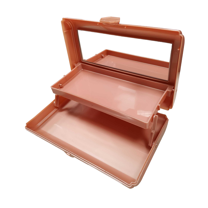 Πλαστικό κουτί οργάνωσης καλλυντικών και μπιζού με καθρέπτη και εργονομική σχεδίαση 2 επιπέδων για εξοικονόμηση χώρου.