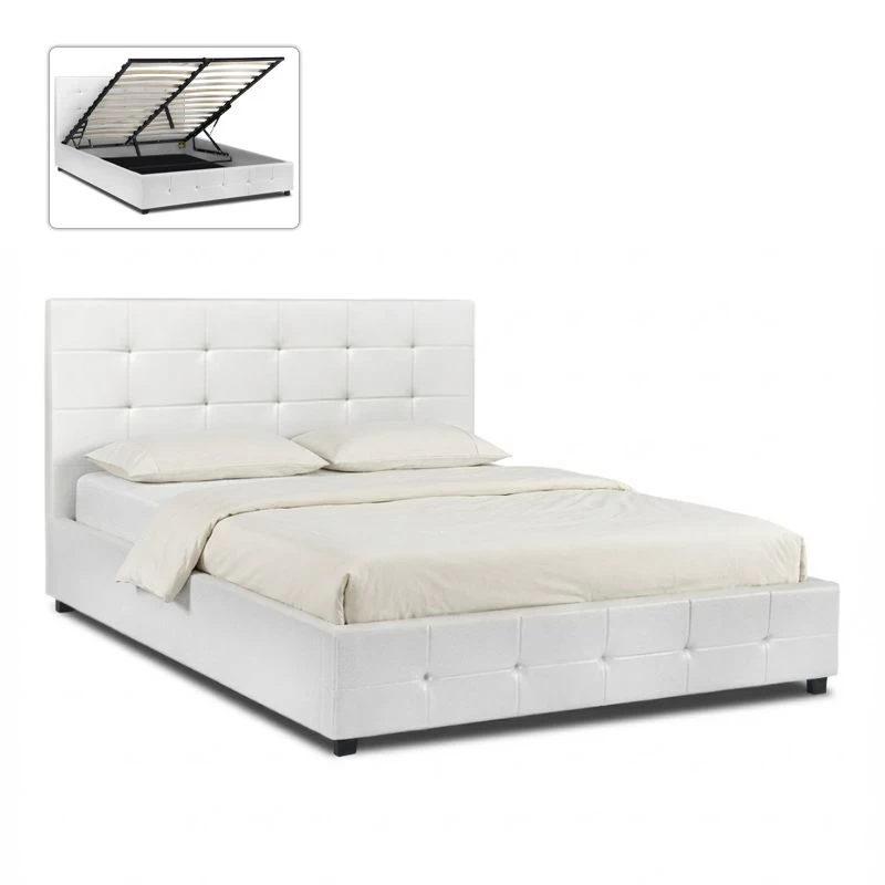 Κρεβάτι Iro Megapap από τεχνόδερμα με αποθηκευτικό χώρο χρώμα λευκό 160×200εκ.