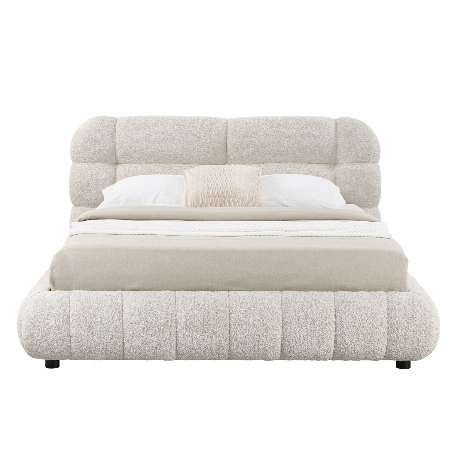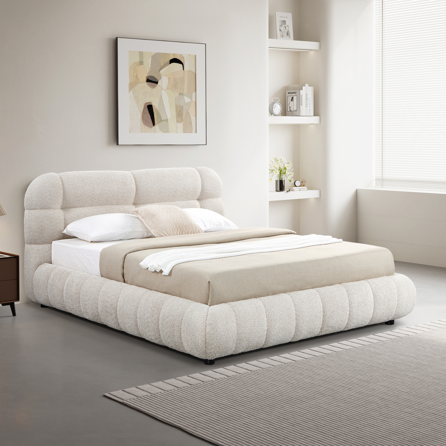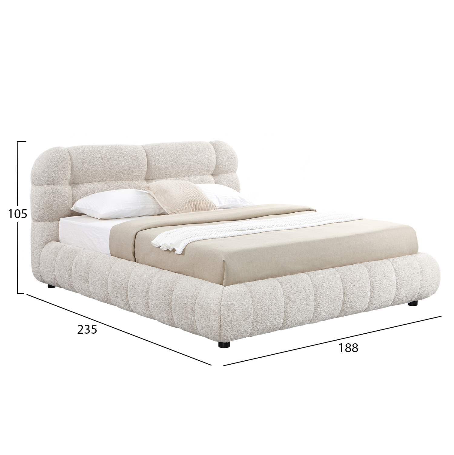 Το διπλό κρεβάτι FB9730.03 για στρώμα 160×200εκ είναι νέα προσθήκη στην γκάμα μας. Ξεχωρίζει για την όμορφη και «ζεστή» επένδυση με μπουκλέ ύφασμα με καπιτονέ τεχνοτροπία σε όμορφο ΜΠΕΖ χρώμα.