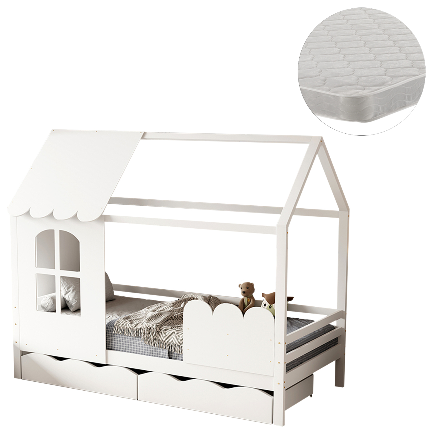 Το παιδικό κρεβάτι FB921319 τύπου Montessori σε διάσταση για στρώμα 90×190εκ, είναι κατασκευασμένο από ξύλο πεύκου σε ΛΕΥΚΟ χρώμα. Όλο το κρεβάτι έχει σχήμα σπιτιού με παραθυράκι και διαθέτει 2 συρτάρια στο κάτω μέρος ως αποθηκευτικό χώρο αλλά και προστατευτικό κάγκελα, ενώ το στρώμα τοποθετείται σε τάβλες από κόντρα-πλακέ ξυλεία.