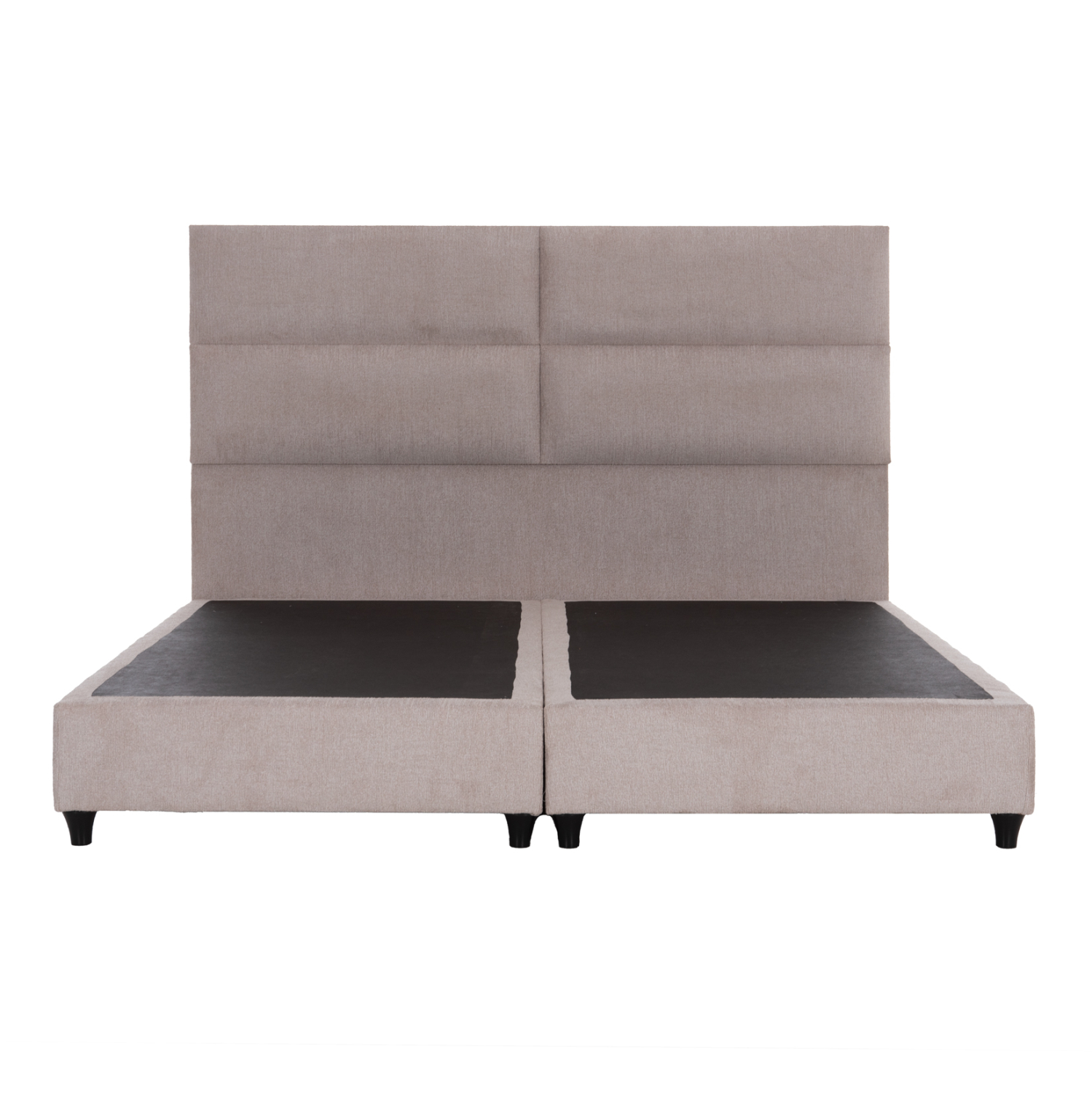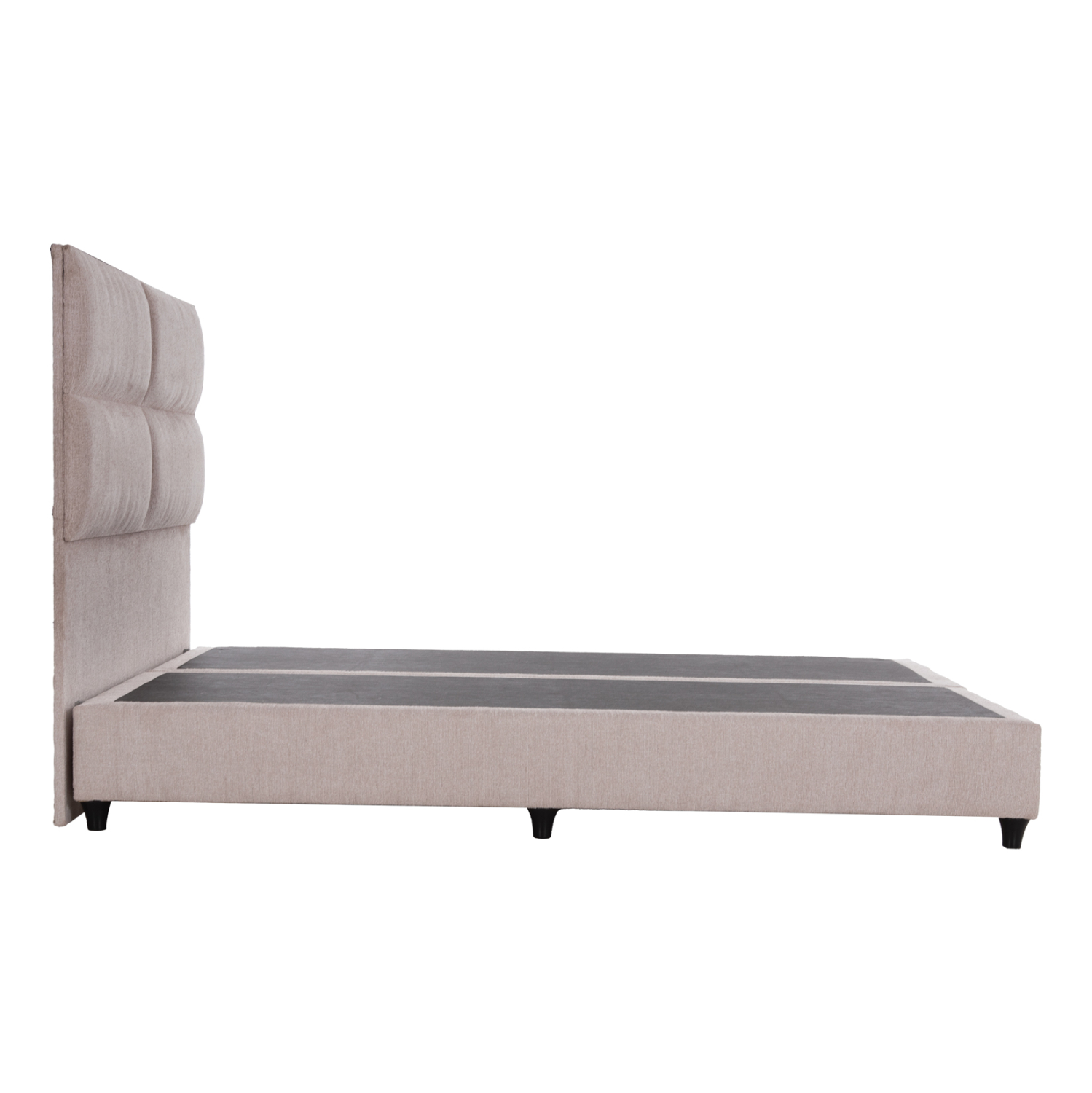 Το κρεβάτι FB9628.32 έχει ψηλό κεφαλάρι, επενδυμένο με καπιτονέ τεχνοτροπία σε μεγάλα ορθογώνια, ενώ όλη η επένδυση του κρεβατιού είναι από ποιοτικό ύφασμα. Το ΜΠΕΖ χρώμα σε όλο το κρεβάτι είναι ουδέτερο και μπορεί να συνδυαστεί με πληθώρα διακοσμητικών μοτίβων. Όμως, το κύριο χαρακτηριστικό αυτού του κρεβατιού είναι ότι δεν ακολουθεί την κλασική κατασκευή με τις τάβλες του σομιέ για την στήριξη του στρώματος, αλλά αντίθετα αποτελείται από μια συνεχόμενη επιφάνεια (2 μοριοσανίδες) πάνω στην οποία τοποθετείται το στρώμα! Σε King Size διαστάσεις στρώματος 180×200 εκ. θα χωρέσει κάθε σας όνειρο!