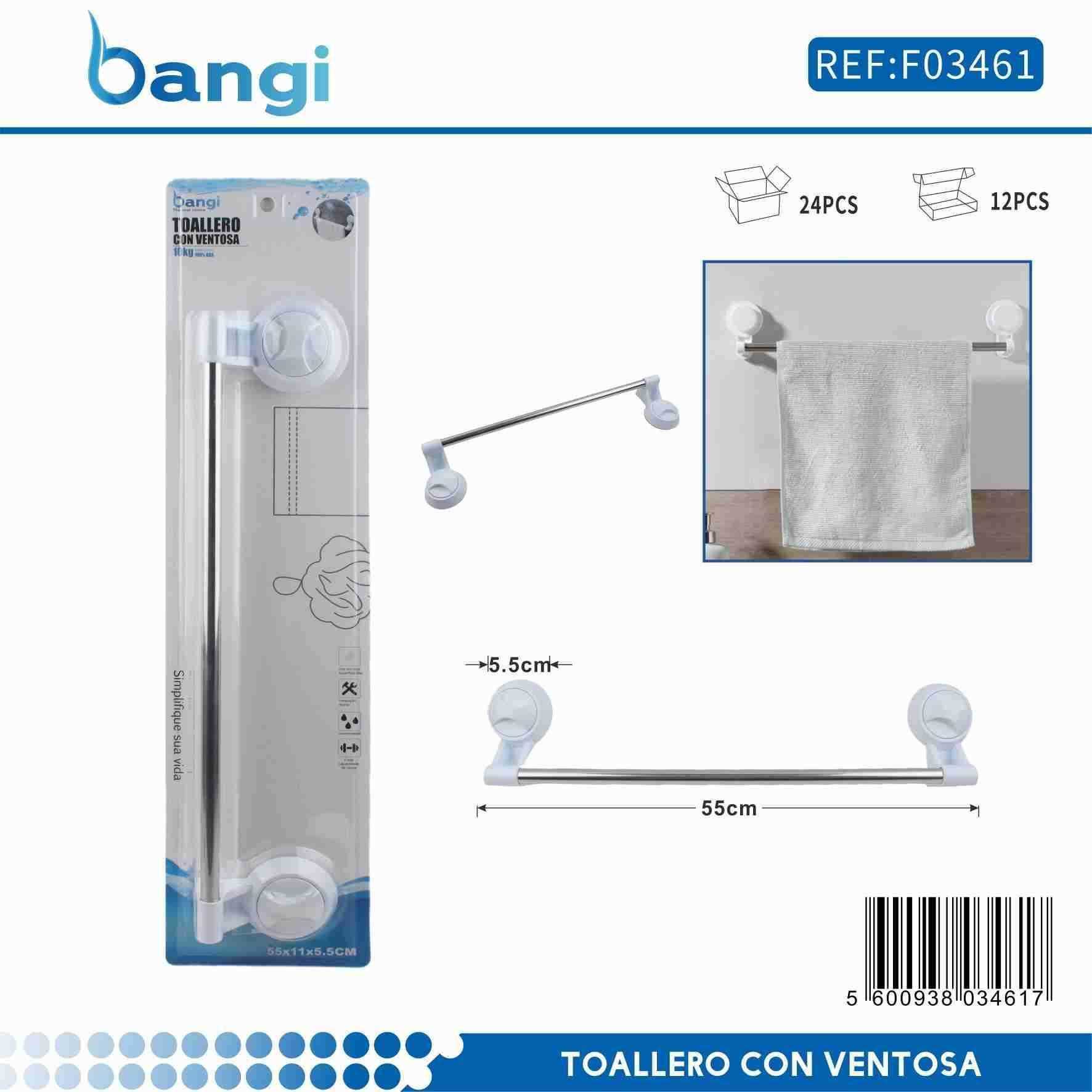 Κρεμάστρα πετσέτας μπάνιου ράγα με βεντούζες - 55cm - 03461