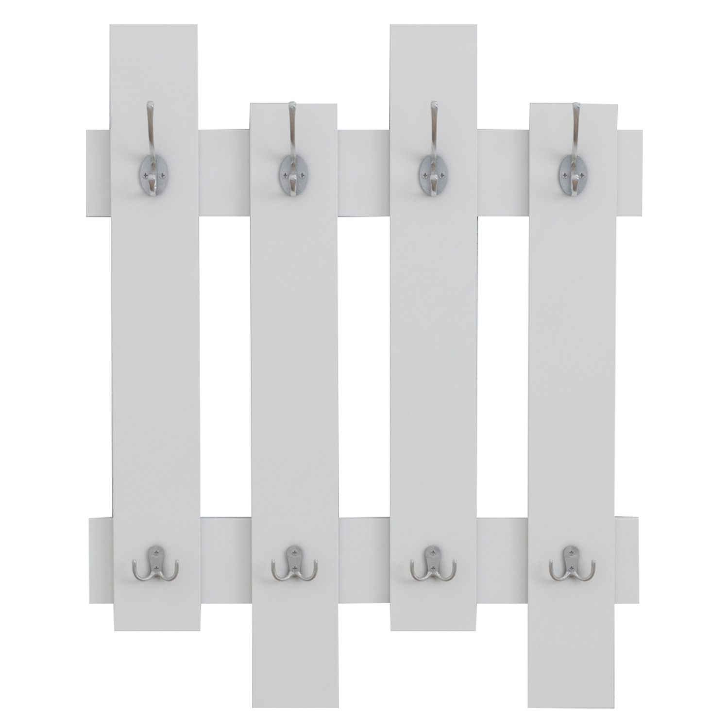 Η FB98940.11 είναι μία επιτοίχια κρεμάστρα μελαμίνης σε χρώμα ΛΕΥΚΟ, με 8 διπλές μεταλλικές θέσεις κρέμασης σε ασημί χρώμα. Ένα χρήσιμο και πρακτικό «εργαλείο» κυρίως για την είσοδο του σπιτιού, αλλά και για διάφορα άλλα δωμάτια, που θα σας βοηθήσει να τακτοποιήσετε τον χώρο σας με τον καλύτερο τρόπο.
