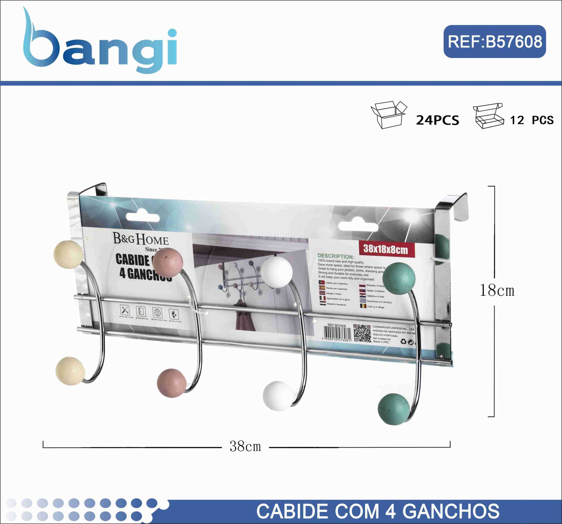 ΚΩΔΙΚΟΣ: 1047636Μεταλλική κρεμάστρα πόρτας 4 θέσεων – 57608 5600910576081