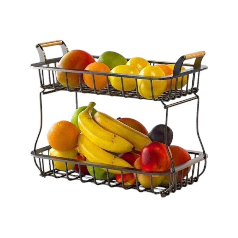Μεταλλική ραφιέρα τροφίμων & φρουτιέρα κουζίνας, με 2 πρακτικά ράφια και χειρολαβές μεταφοράς. Διαστάσεις: 32.5 x 37 x 22cm.