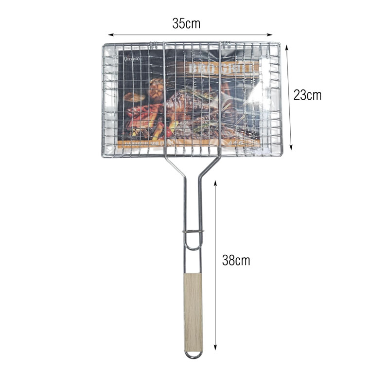 Μεταλλική Σχάρα Ψησίματος με Ξύλινη Λαβή 35×23cm – Metal BBQ Grill Basket with Wooden Handle 0248033