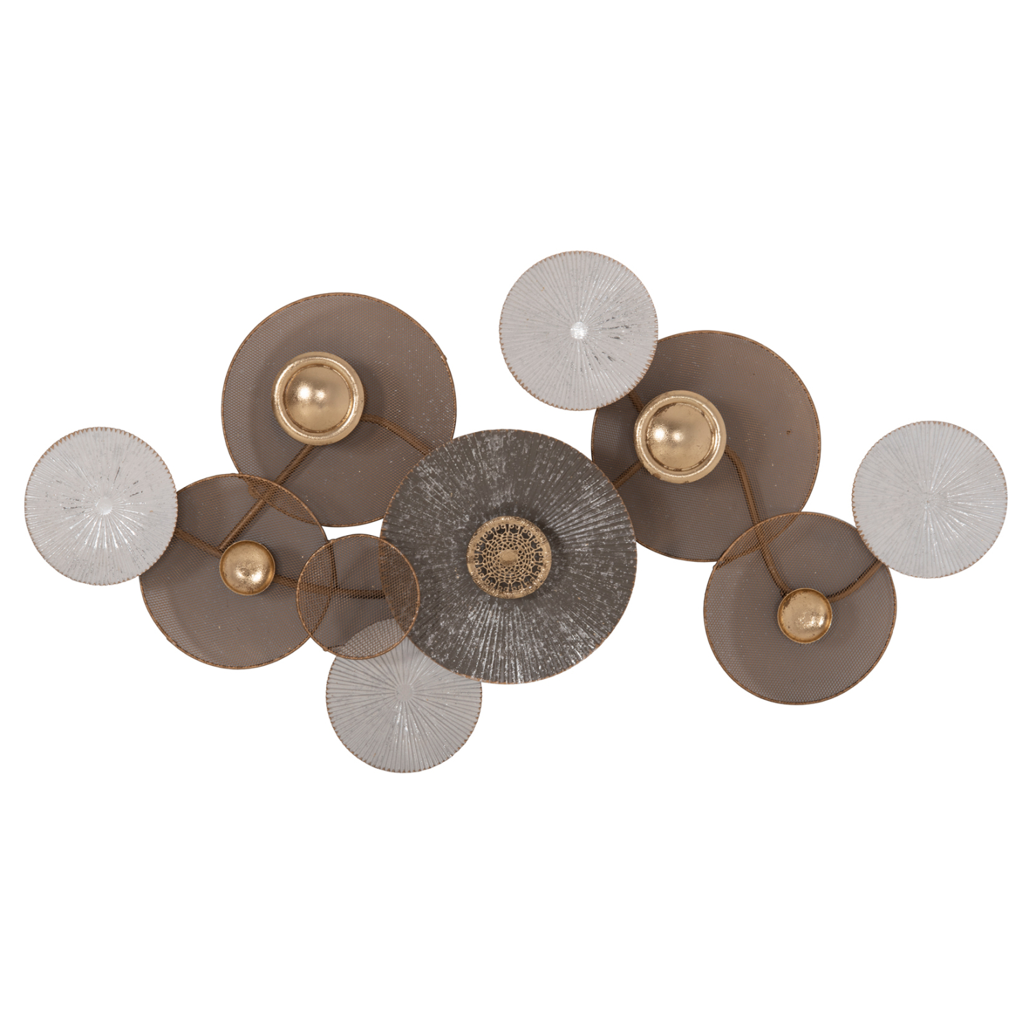 Μεταλλικό διακοσμητικό τοίχου σε χρυσή και λευκή απόχρωση με ανθρακί λεπτομέρεια.