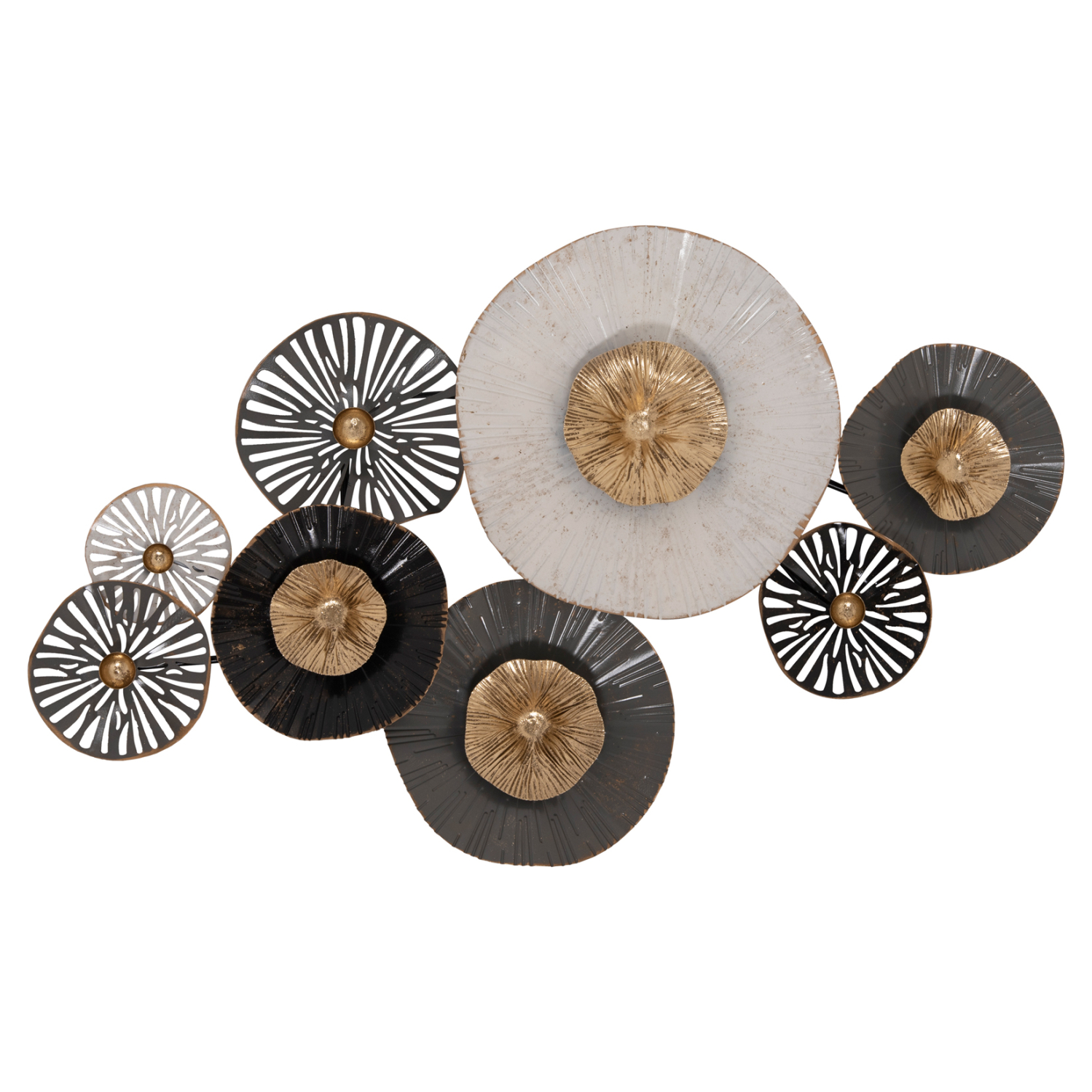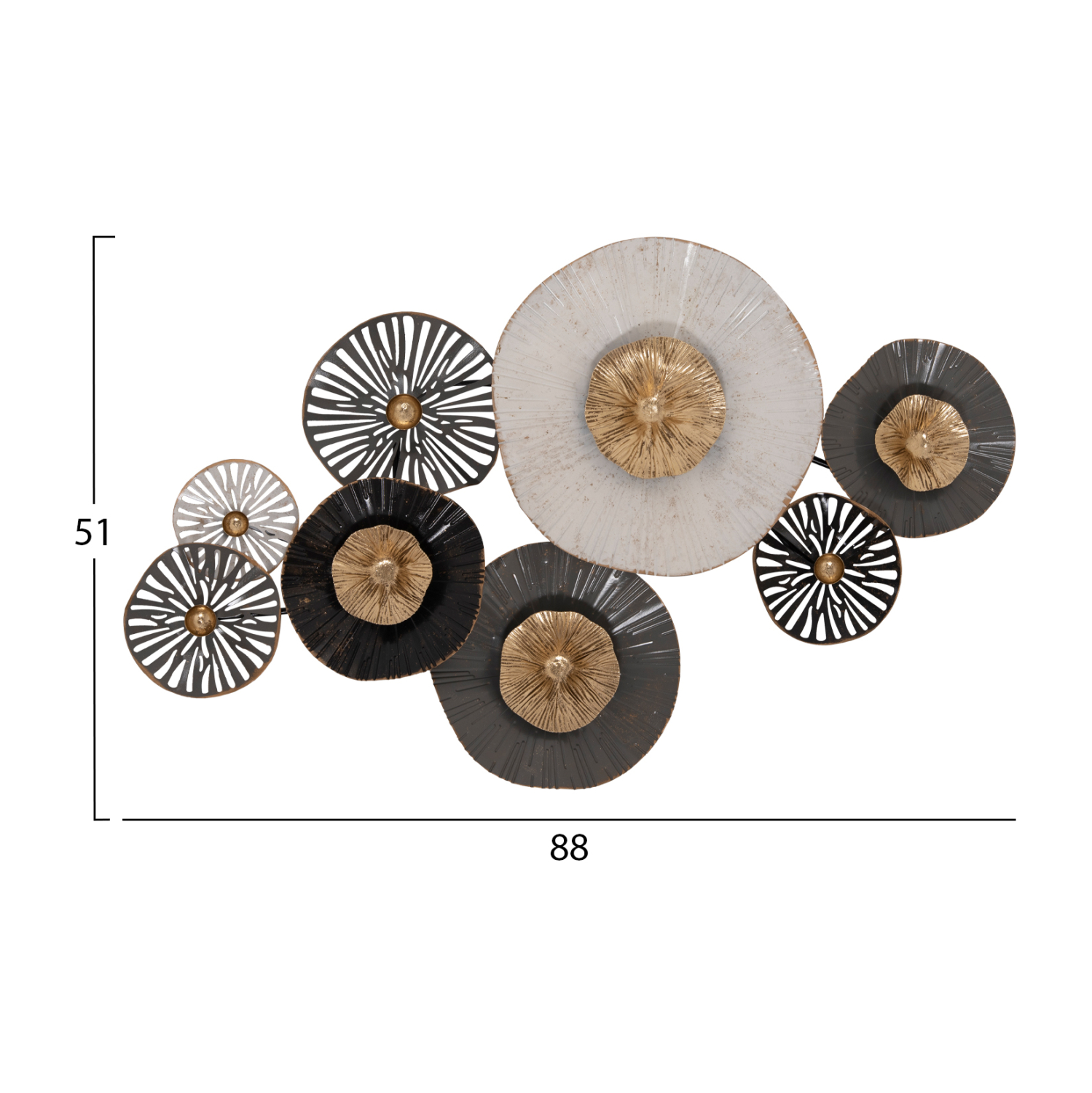 Μεταλλικό διακοσμητικό τοίχου σε γκρι και εκρού απόχρωση με χρυσές και ανθρακί λεπτομέρειες.