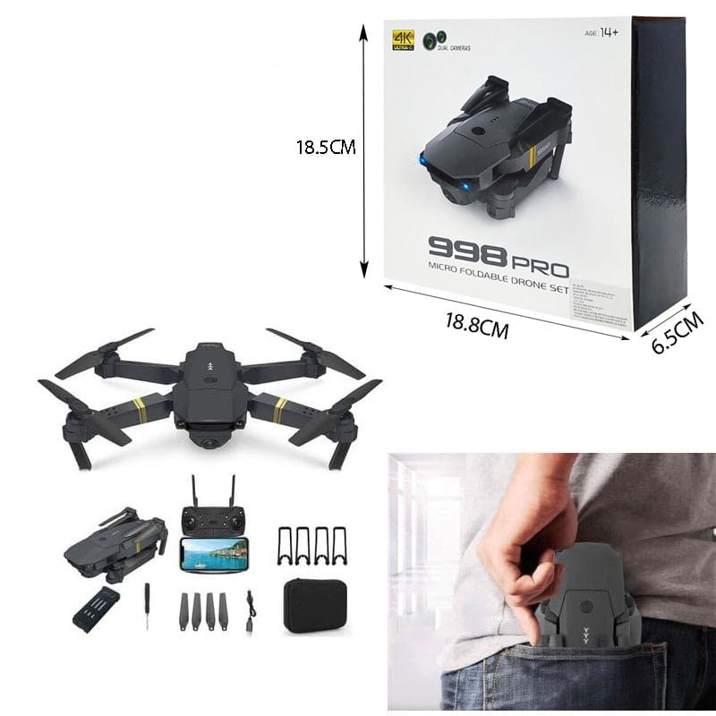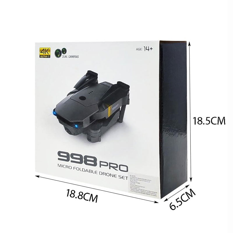 Μικρό Αναδιπλόμενο Και Επαναφορτιζόμενο Drone με Τηλεχειστήριο Μαύρο OEM-998Pro διαθέτει ανάλυση 720p HD και επιτυγχάνει μια ισορροπία μεταξύ της ποιότητας της εικόνας και των απαιτήσεων αποθηκευτικού χώρου.