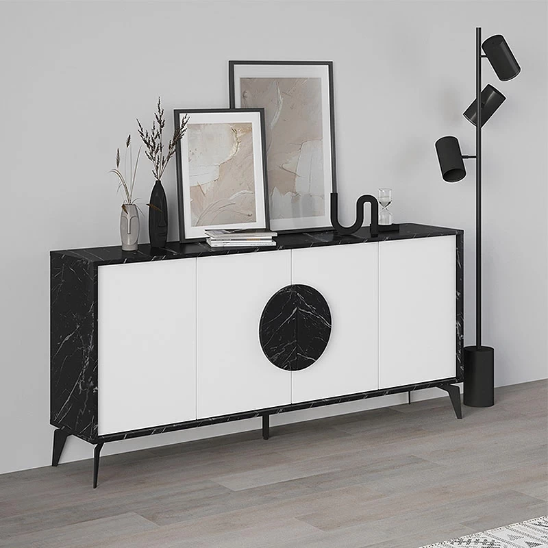 Μπουφές μελαμίνης Gora Megapap χρώμα μαύρο εφέ μαρμάρου – λευκό 180×35,6×82εκ.