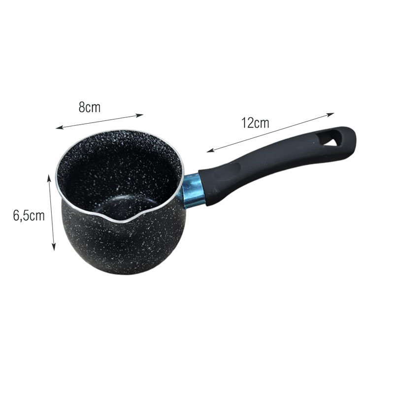 Αντικολλητικό μπρίκι ιδανικό για την παρασκευή ελληνικού καφέ και άλλων ζεστών ροφημάτων. Κατασκευασμένο από ανθεκτικό υλικό με μαρμάρινη αντικολλητική επίστρωση, εξασφαλίζει ομοιόμορφη θέρμανση και εύκολο καθάρισμα. Διαθέτει εργονομική λαβή για ασφαλές και άνετο κράτημα.