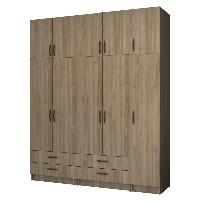 Ντουλάπα ρούχων Ricardo Megapap πεντάφυλλη με πατάρι και συρτάρια χρώμα καρυδί 200×51,8×240εκ.