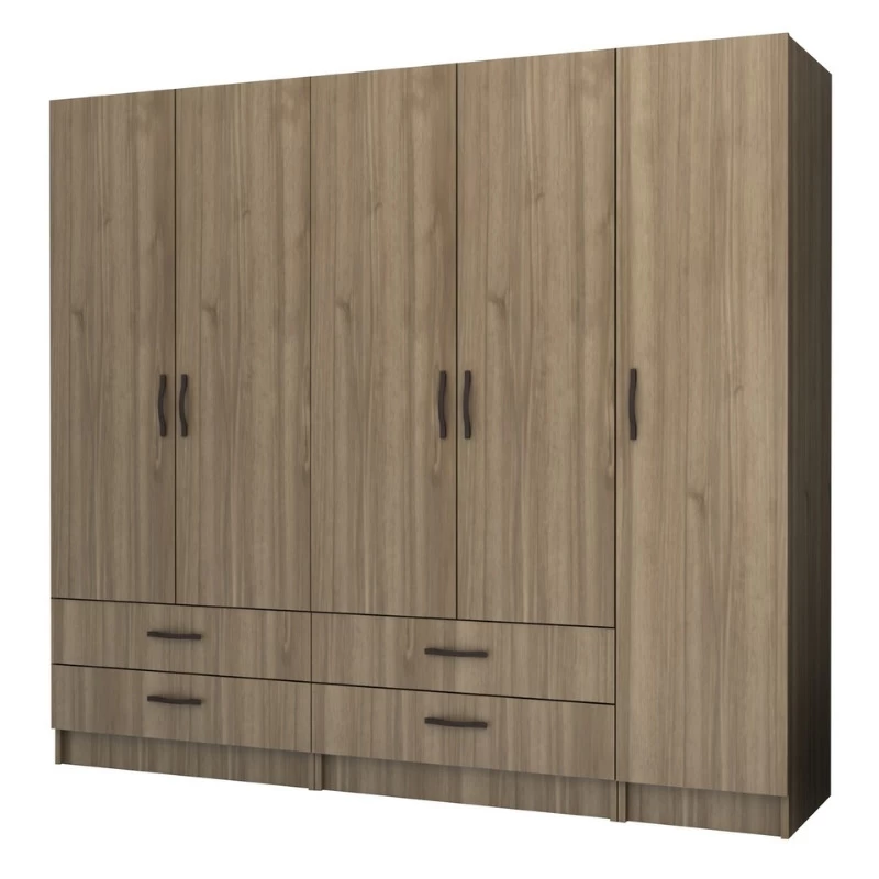 Ντουλάπα ρούχων Ricardo Megapap πεντάφυλλη με συρτάρια χρώμα καρυδί 200×51,8×181εκ.