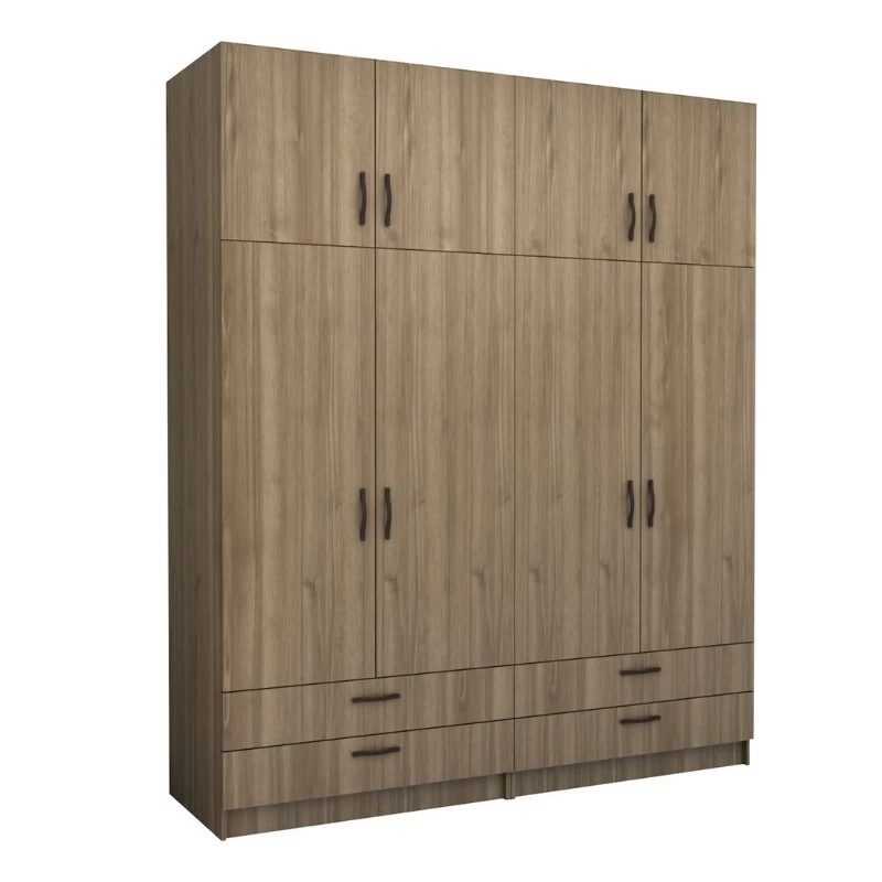 Ντουλάπα ρούχων Victoria Megapap τετράφυλλη με πατάρι και συρτάρια χρώμα καρυδί 200x60x240εκ.