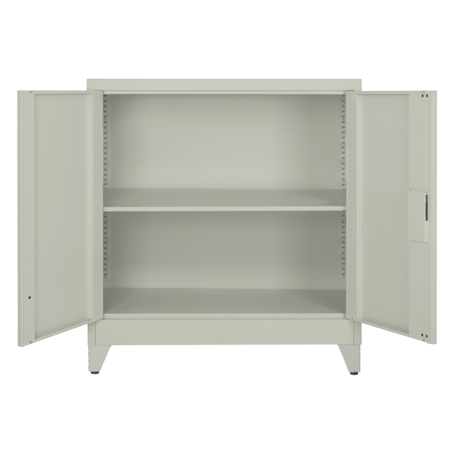 Η FB911980 είναι μια πρακτικότατη κοντή μεταλλική ντουλάπα με πόδια, που έχει φτιαχτεί με γνώμονα την χωρητικότητα για το μέγεθός της και την ανθεκτικότητα. Είναι δίφυλλη με τις δύο πόρτες να κλείνουν ακριβώς στην μέση της κατασκευής, ενώ το εσωτερικό είναι ένας ενιαίος χώρος χωρίς κάθετα χωρίσματα. Διαθέτει 1 ράφι που δημιουργεί 2 αποθηκευτικούς χώρους. Οι πόρτες διαθέτουν κλειδαριά που κλειδώνει με κλειδί, ενώ το χρώμα της ντουλάπας είναι πολύ ανοιχτό γκρι.