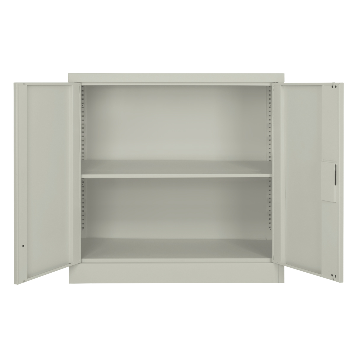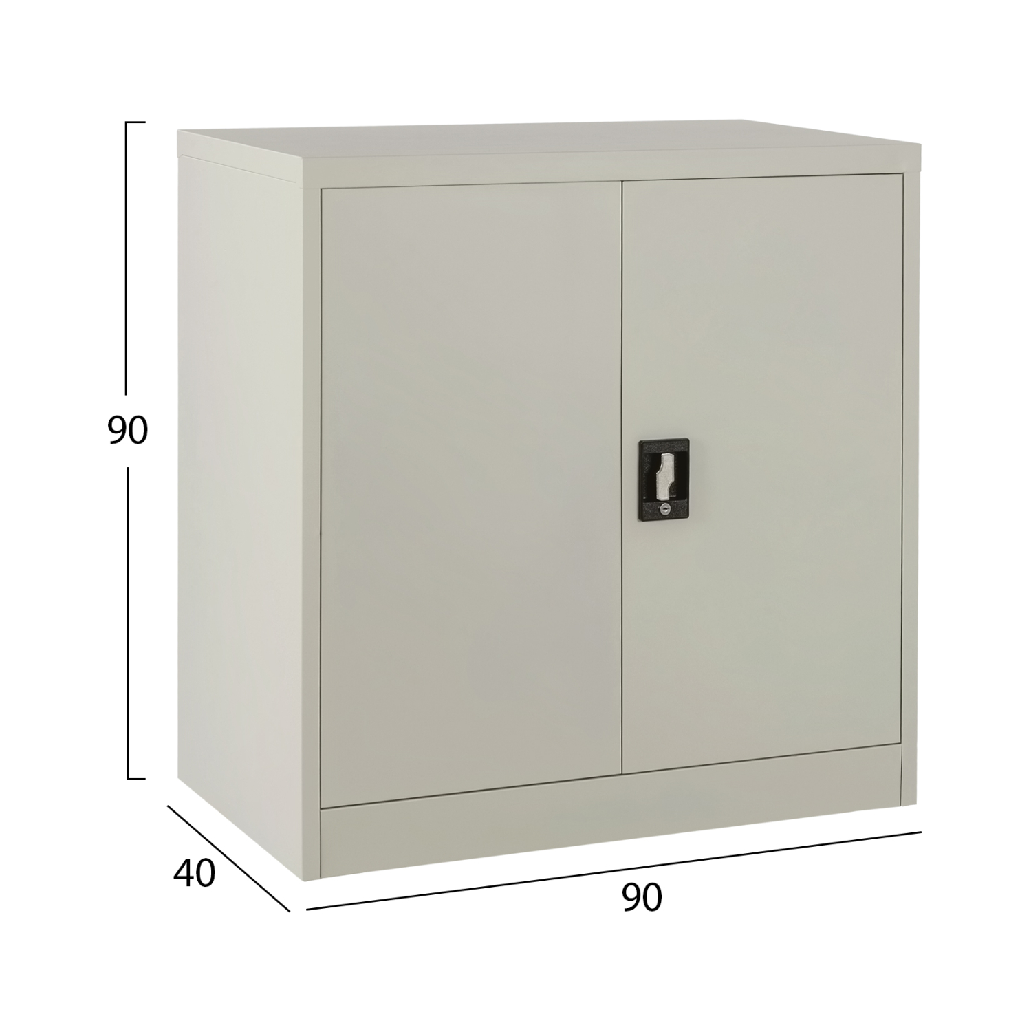 Η FB95960.01 είναι μια πρακτικότατη κοντή μεταλλική ντουλάπα που έχει φτιαχτεί με γνώμονα την χωρητικότητα για το μέγεθός της και την ανθεκτικότητα. Είναι δίφυλλη με τις δύο πόρτες να κλείνουν ακριβώς στην μέση της κατασκευής, ενώ το εσωτερικό είναι ένας ενιαίος χώρος χωρίς κάθετα χωρίσματα. Διαθέτει 1 ρυθμιζόμενο ράφι που δημιουργεί 2 αποθηκευτικούς χώρους. Οι πόρτες διαθέτουν κλειδαριά που κλειδώνει με κλειδί, ενώ το χρώμα της ντουλάπας είναι πολύ ανοιχτό γκρι.