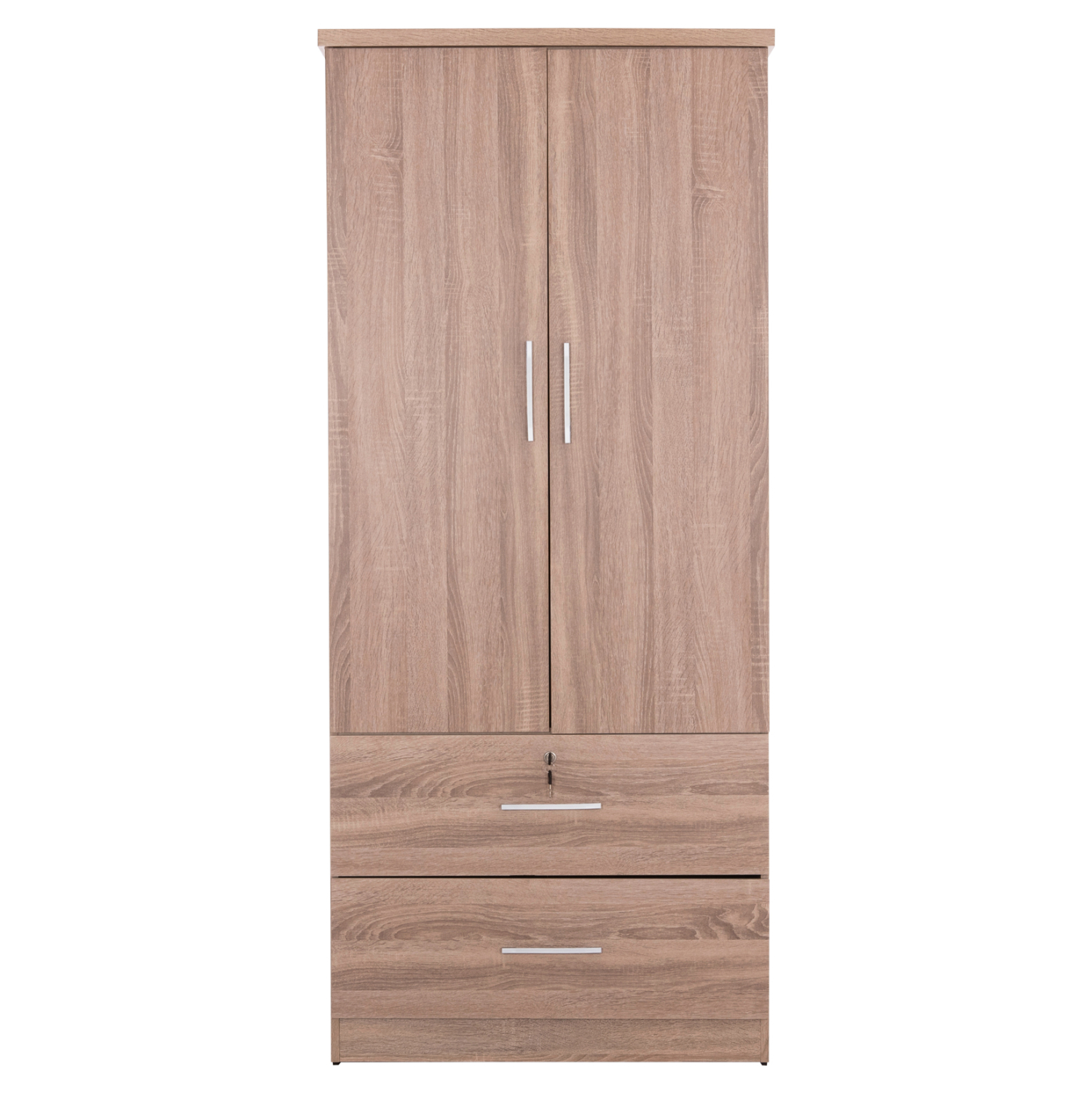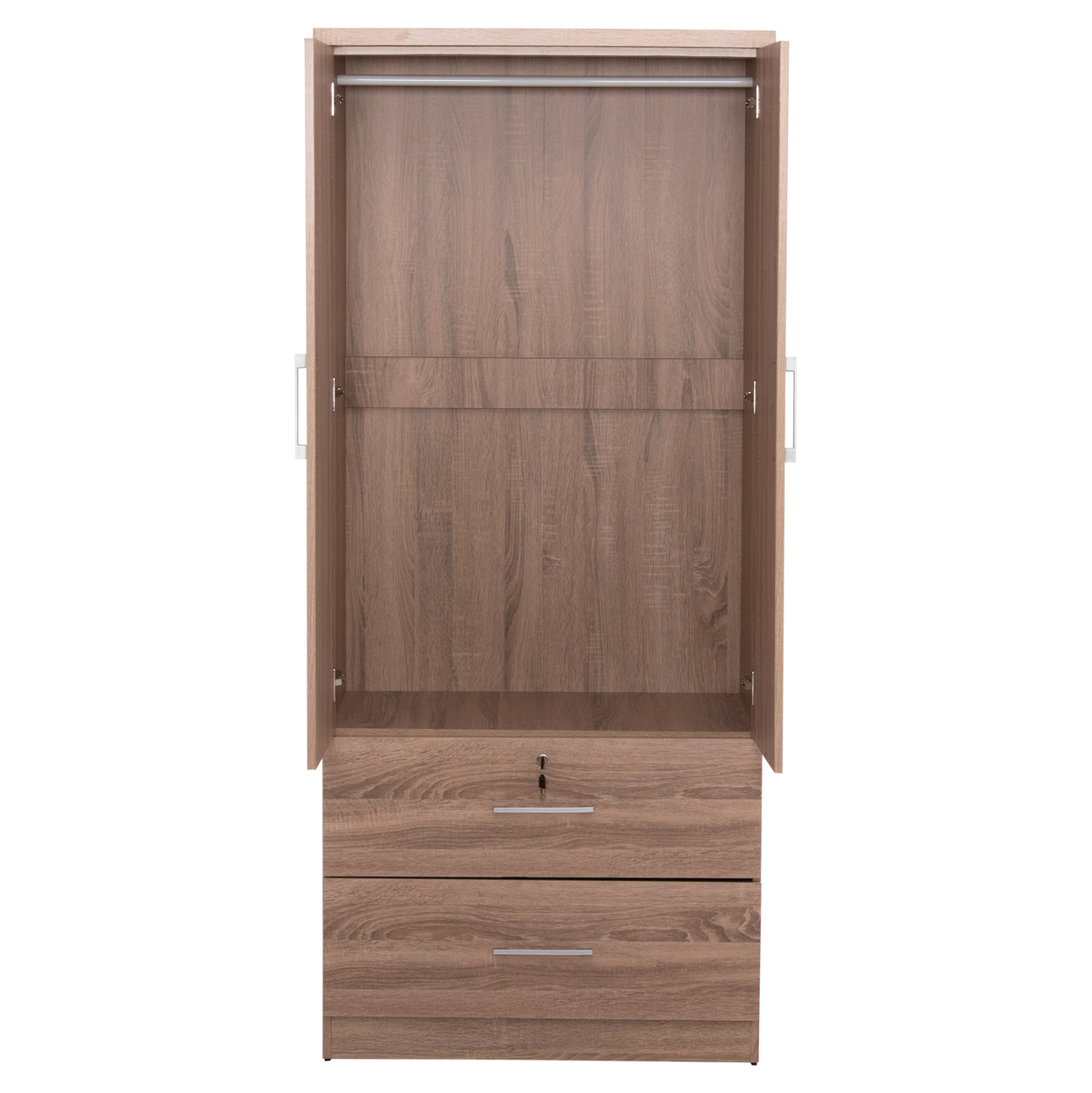 Η δίφυλλη ντουλάπα FB92484.11 είναι μια πρακτικότατη ντουλάπα που έχει φτιαχτεί με γνώμονα την όσο το δυνατόν καλύτερη εκμετάλλευση του χώρου. Έχει 2 πόρτες, αλλά με απροσδόκητα άνετους χώρους στο εσωτερικό της, και διαθέτει απλά μια μπάρα κρέμασης ρούχων. Στο κάτω μέρος υπάρχουν 2 συρτάρια, ένα εκ των οποίων διαθέτει κλειδαριά. Είναι κατασκευασμένη από μελαμίνη σε SONAMA OAK χρώμα και αισθητικά μπορεί να ταιριάξει με πολλά άλλα στυλ, χάρη και στις «καθαρές» γραμμές της.