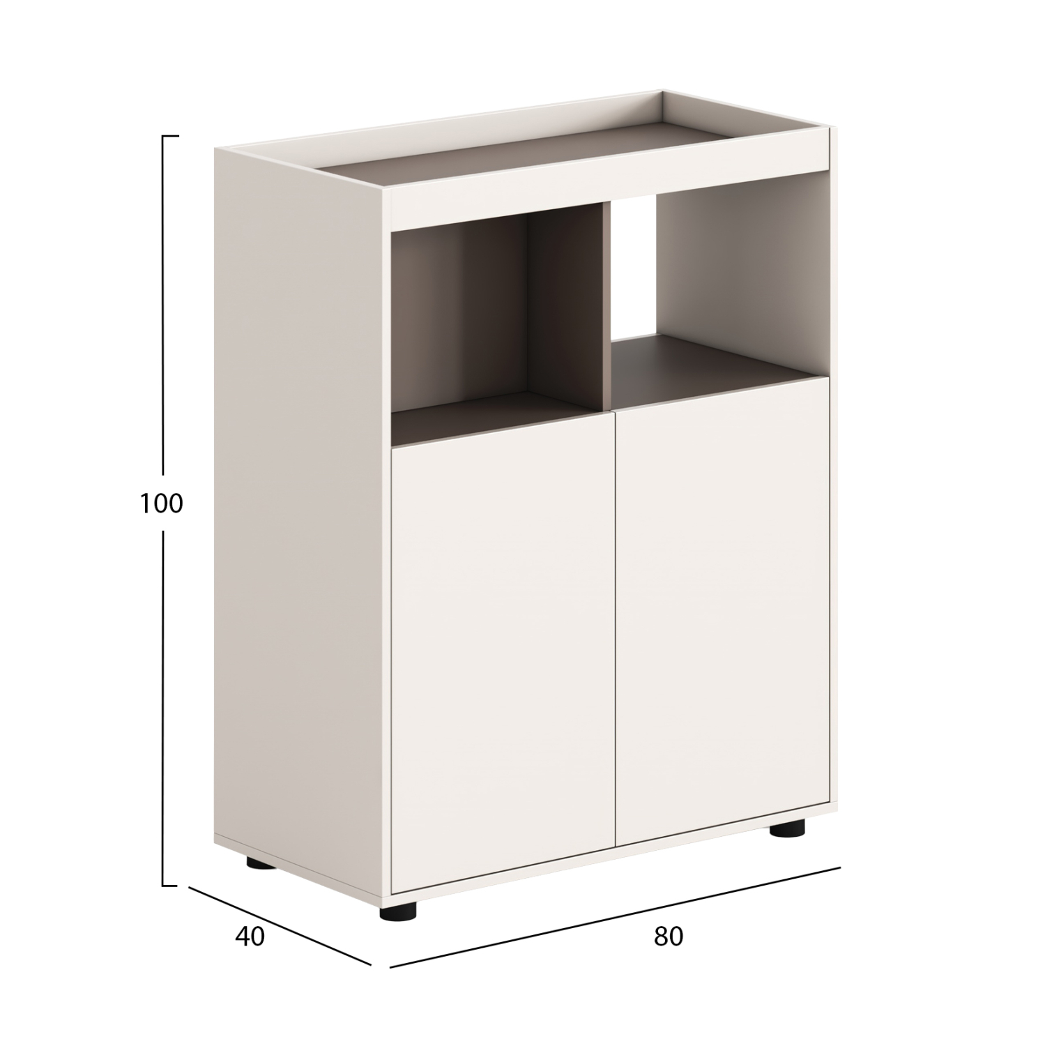 Το κοντό ντουλάπι βιβλιοθήκη FB918284 αποτελεί μια πρακτική και καλαίσθητη λύση αποθήκευσης για γραφεία και επαγγελματικούς χώρους. Ο συνδυασμός κρεμ μελαμίνης με ανοιχτό καφέ δημιουργεί ένα φωτεινό και σύγχρονο αποτέλεσμα που ενσωματώνεται εύκολα σε κάθε γραφειακό περιβάλλον.