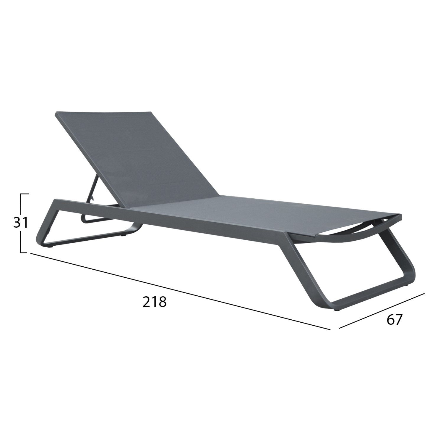 Η ξαπλώστρα FB96562.01 συνδυάζει εργονομικό σχεδιασμό και διαχρονική αισθητική, προσφέροντας μέγιστη άνεση και ανθεκτικότητα. Διαθέτει σκελετό από αλουμίνιο σε ΓΚΡΙ χρώμα, ενώ η επένδυση είναι από ανθεκτικό ύφασμα textilene σε ίδιο χρώμα, ιδανικό για χρήση σε εξωτερικούς χώρους. Η πλάτη ρυθμίζεται σε τέσσερα επίπεδα, συν μία εντελώς επίπεδη θέση, για απόλυτη προσαρμογή στις ανάγκες ξεκούρασης. Ιδανική για επαγγελματική χρήση!