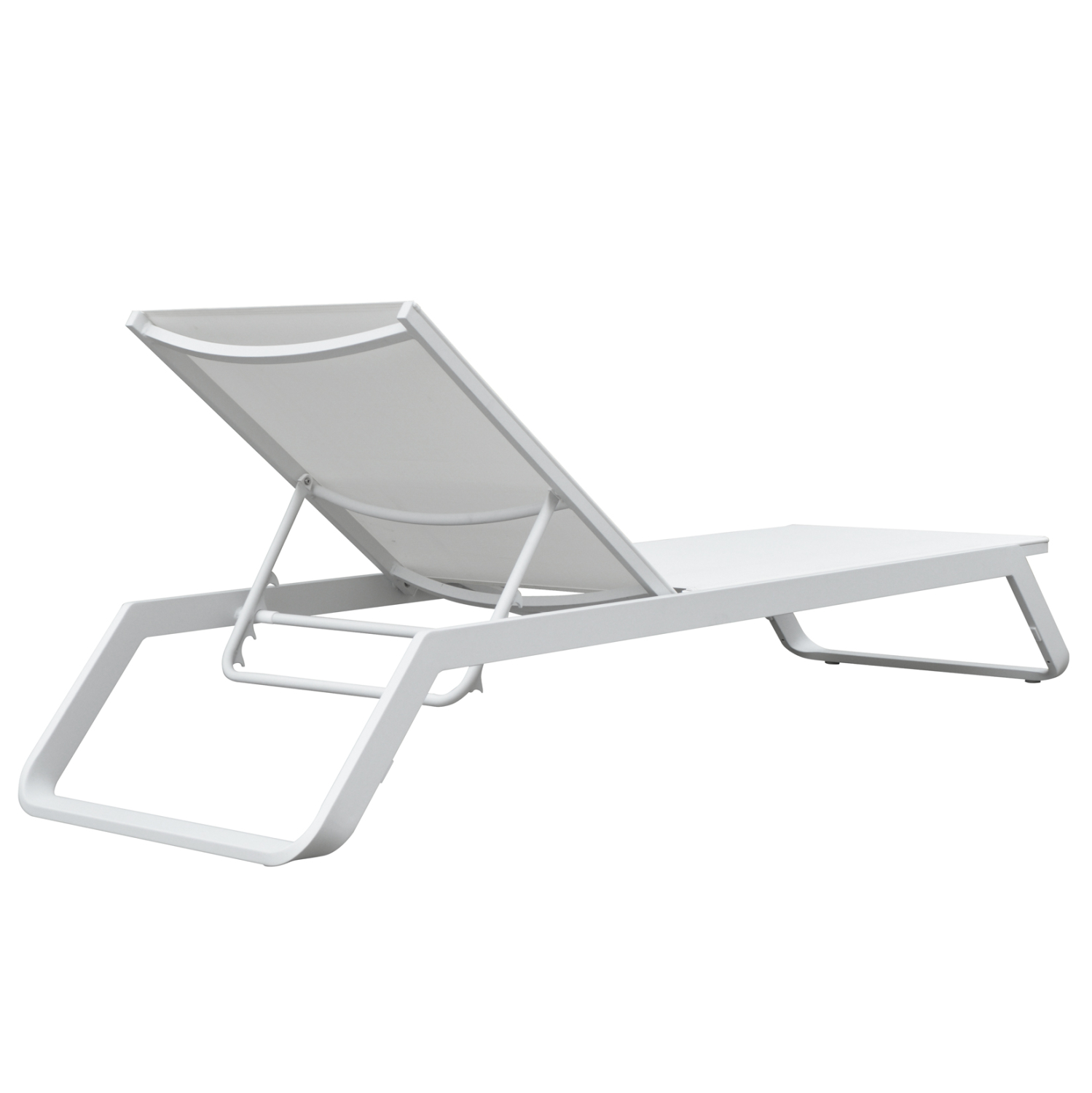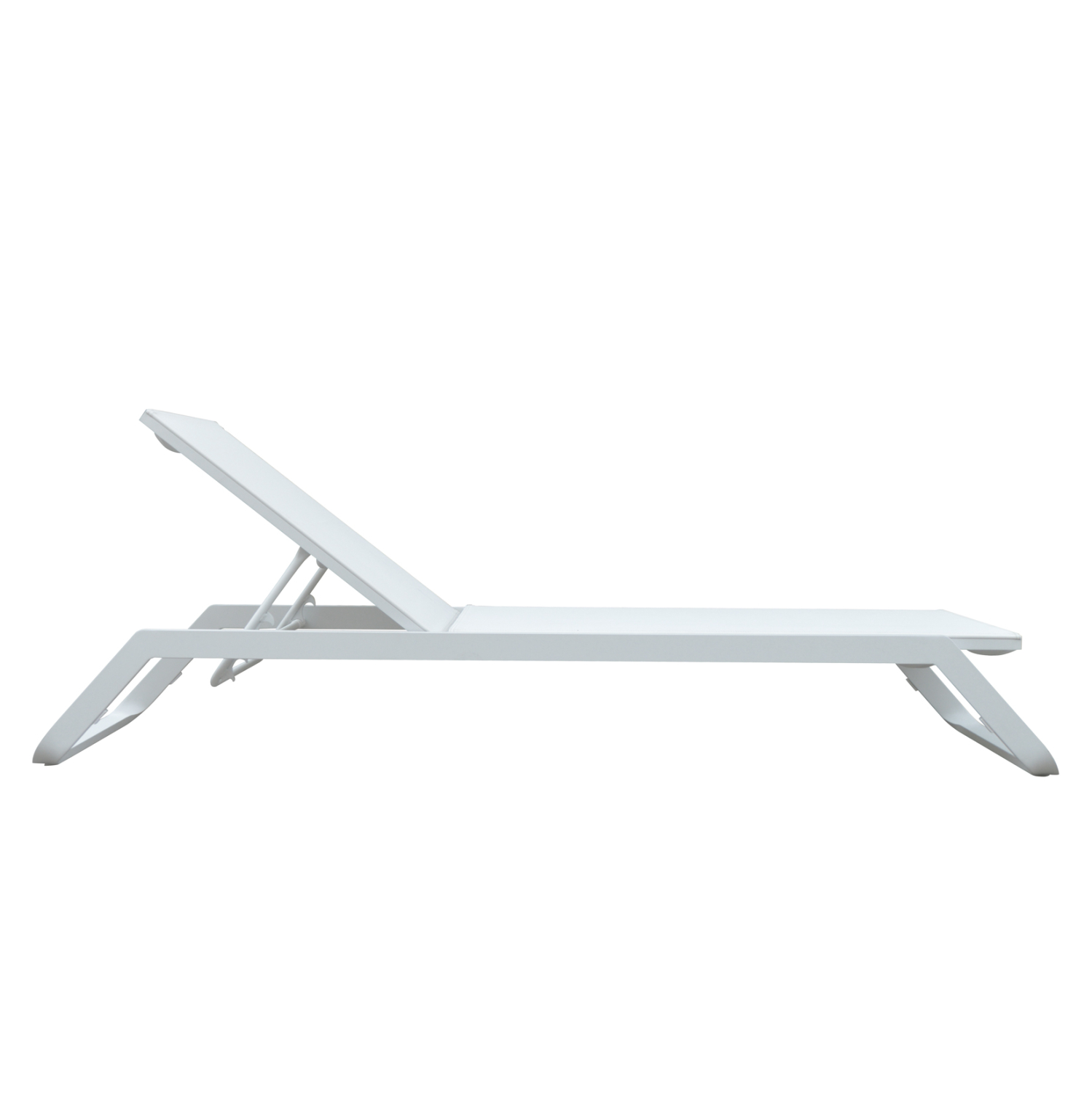 Η ξαπλώστρα FB96562.02 συνδυάζει εργονομικό σχεδιασμό και διαχρονική αισθητική, προσφέροντας μέγιστη άνεση και ανθεκτικότητα. Διαθέτει σκελετό από αλουμίνιο σε φωτεινό ΛΕΥΚΟ χρώμα, ενώ η επένδυση είναι από ανθεκτικό ύφασμα textilene σε ίδιο χρώμα, ιδανικό για χρήση σε εξωτερικούς χώρους. Η πλάτη ρυθμίζεται σε τέσσερα επίπεδα, συν μία εντελώς επίπεδη θέση, για απόλυτη προσαρμογή στις ανάγκες ξεκούρασης. Ιδανική για επαγγελματική χρήση!