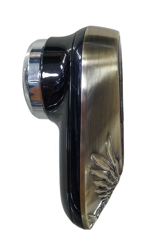 Επαναφορτιζόμενη ξυριστική μηχανή με πρωτοποριακό σχεδιασμό, σε mini εργονομικό μέγεθος, με κυκλικές λεπίδες, ψηφιακή οθόνη ενδείξεων και μεταλλικό περίβλημα με ανάγλυφα σχέδια.